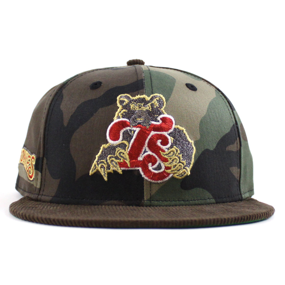 TENSMO TENNESSEE SMOKIES BEAR New Era Fitted Hat in WoodLand Camo, Brown and Green Under Brim.