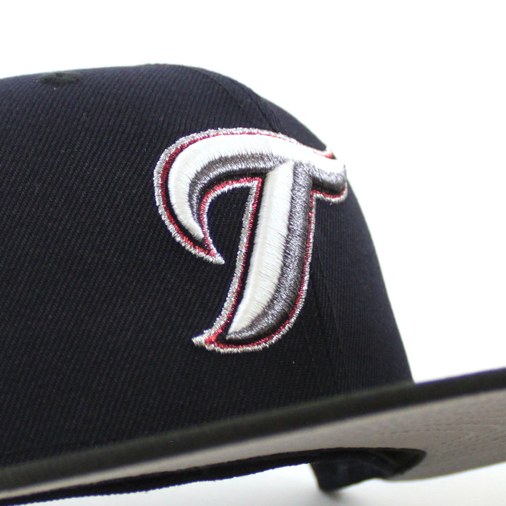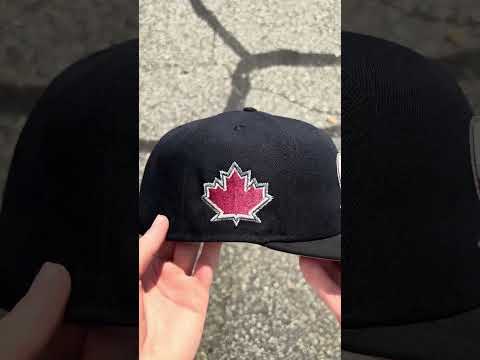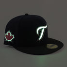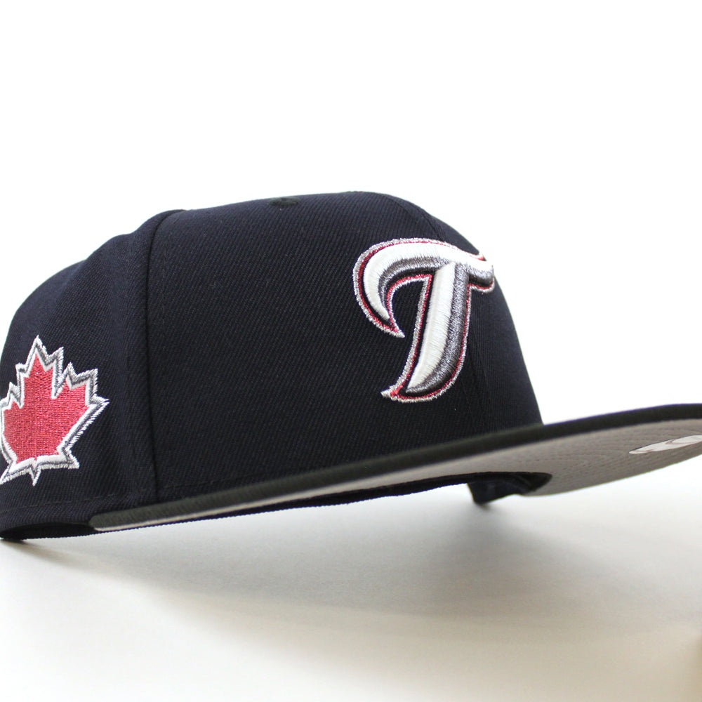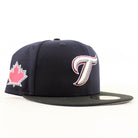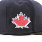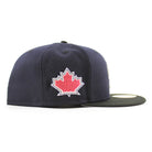 Toronto Blue Jays Maple Leaf Patch New Era 59Fifty Fitted Cap in Navy, Black and Gray Under Brim.