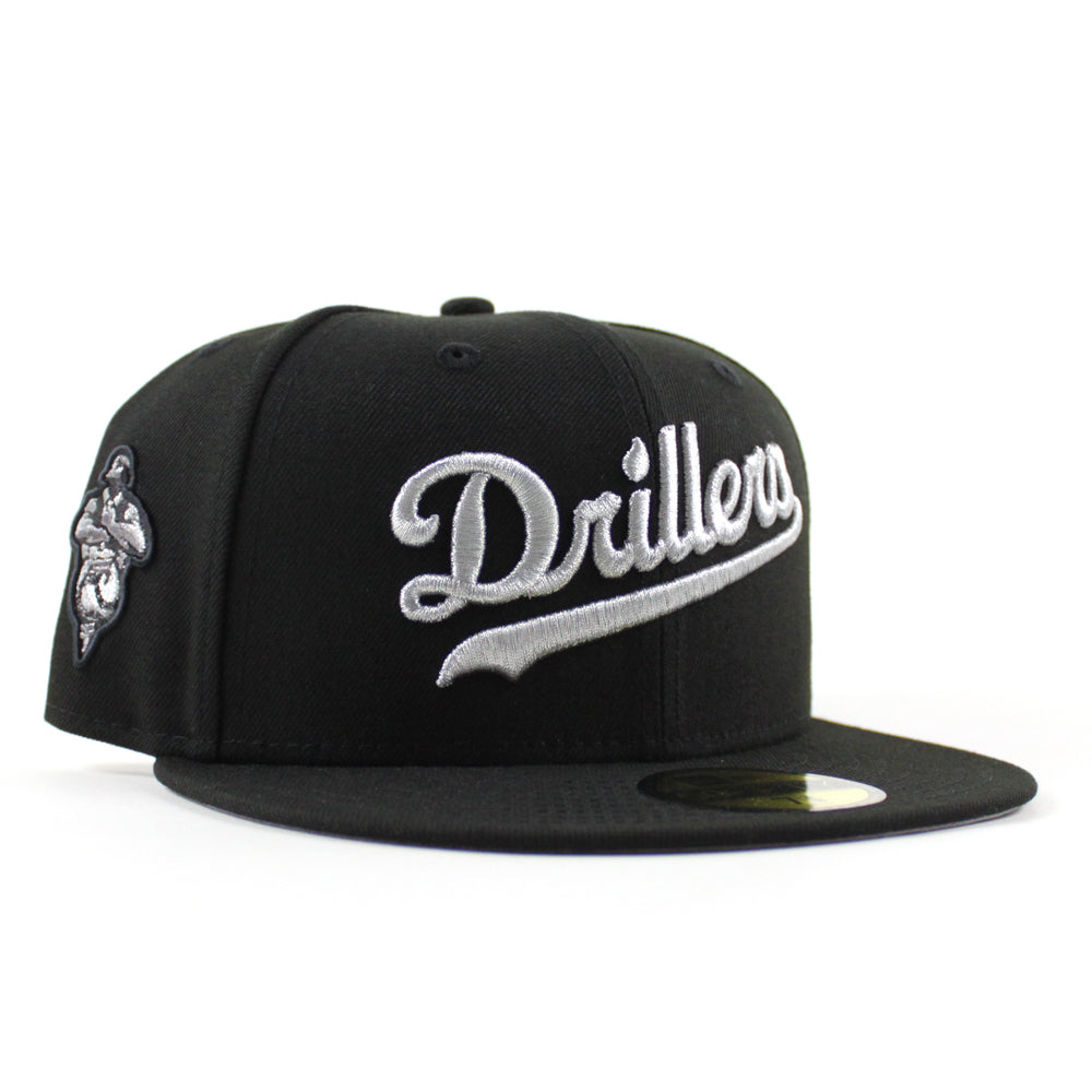 Tulsa Drillers Drillers Patch Patch New Era 59Fifty Fitted Hat in Black with Gray Under Brim.