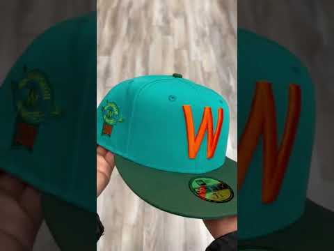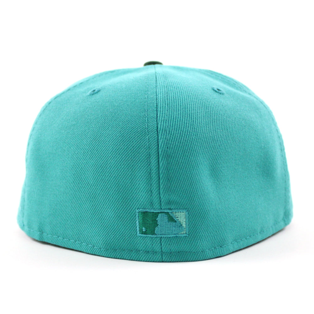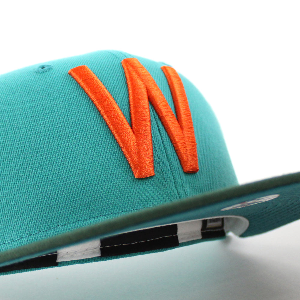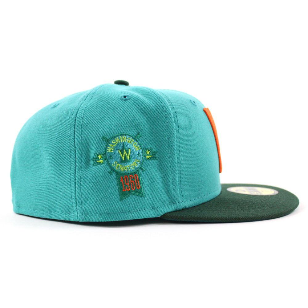 Washington Senators 1960 Season Anniversary New Era 59FIFTY Fitted Hat in Teal with Dark Green Visor Aqua Under Brim.
