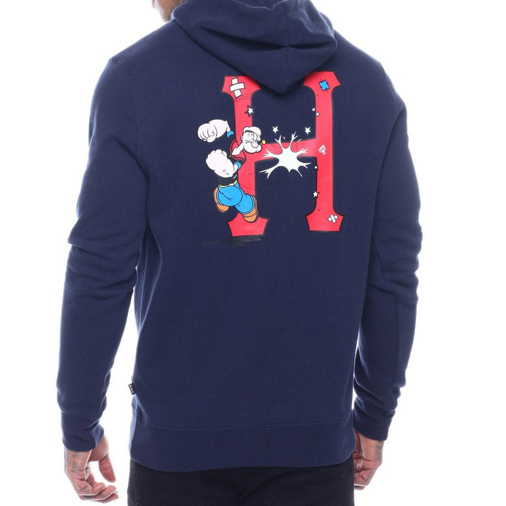 HUF x Popeye CLASSIC H FLEECE HOODIE SWEATSHIRT in Navy. Celebrate Popeye's 90th anniversary with this HUF WORLDWIDE. An exciting new apparel collection featuring new designs for Spring 2019