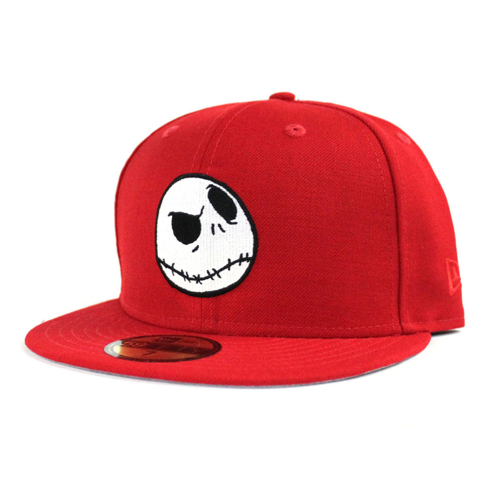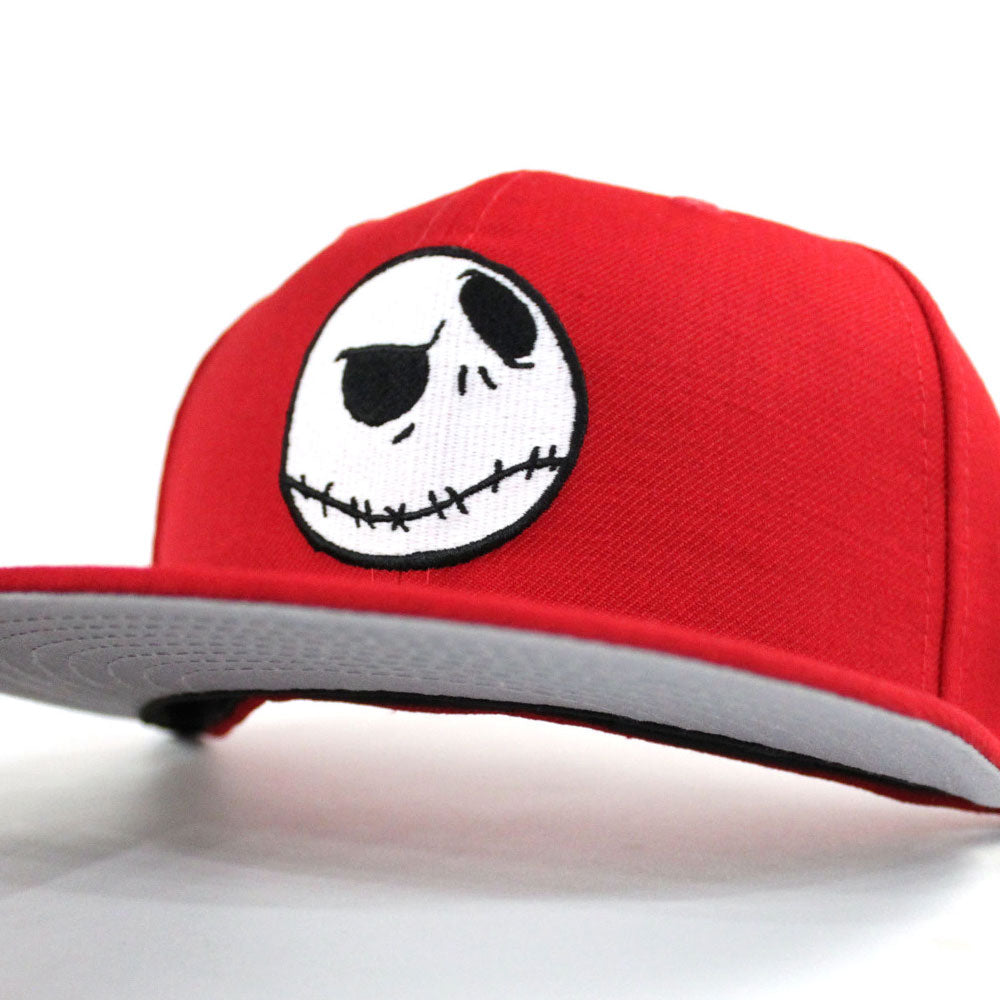 Nightmare Before Christmas Jack Skellington Face New Era 59Fifty Fitted Hat in Red, Glow in the Dark & Gray Under Brim.