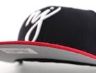 Custom NJ Script New Era 5950 fitted hat in a very popular black and red colorway. This New Jersey 59Fifty cap has a black crown with a red brim and Gray Under Brim. The logo is white!