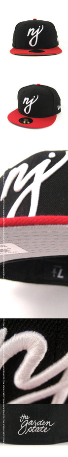 NJ Script New Era Fitted Hats (BLACK RED GRAY UNDER BRIM)