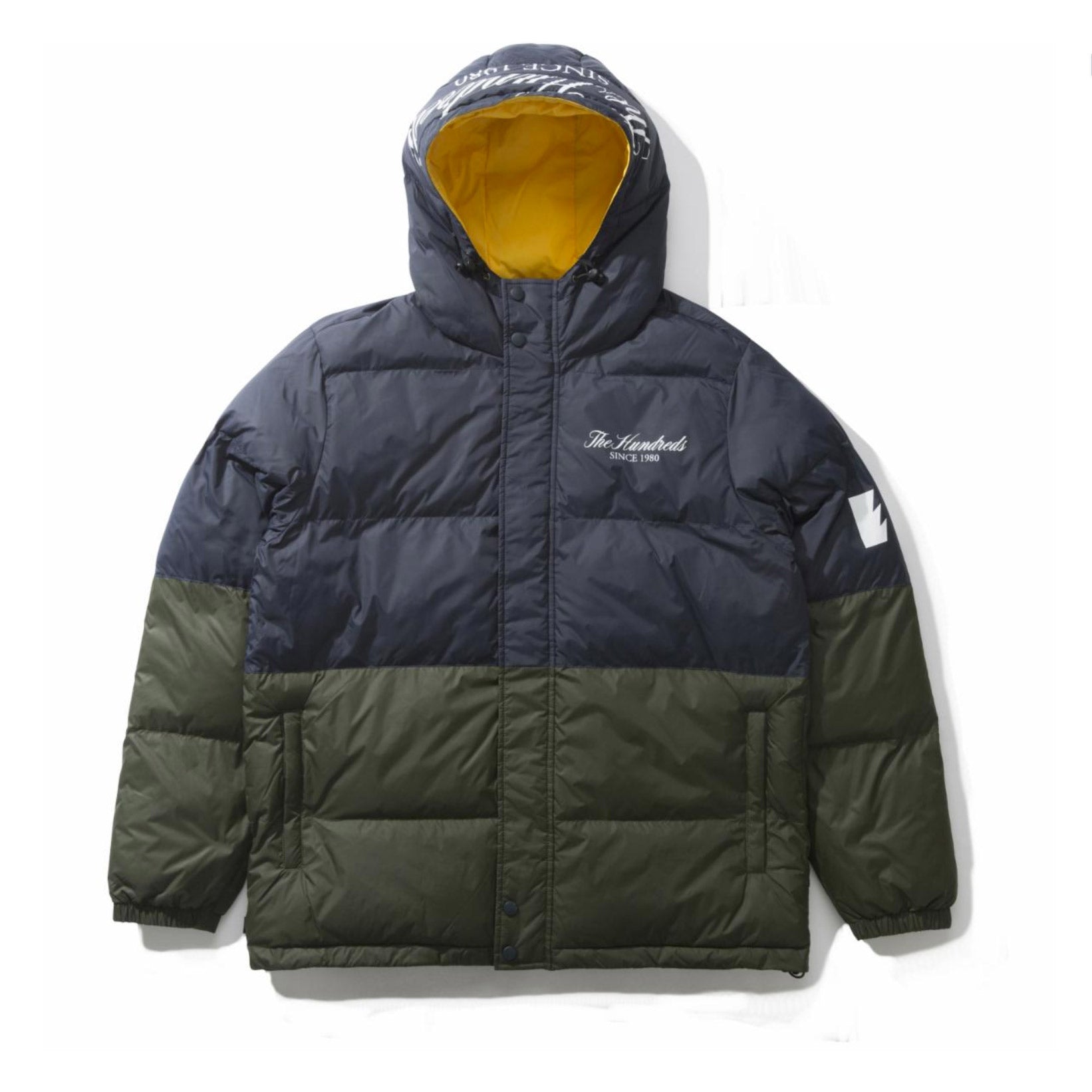 The Hundreds Wrightwood Puffer Jacket in Navy and Olive.