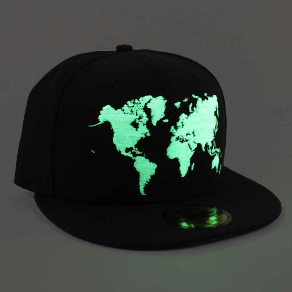 World Wide New Era Fitted Hat (Glow in the Dark Logo Black Gray Under Brim)