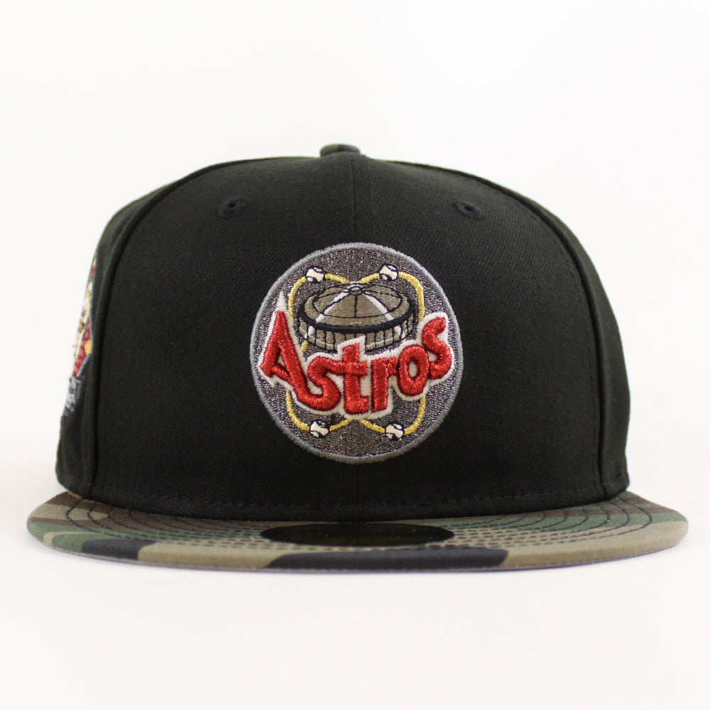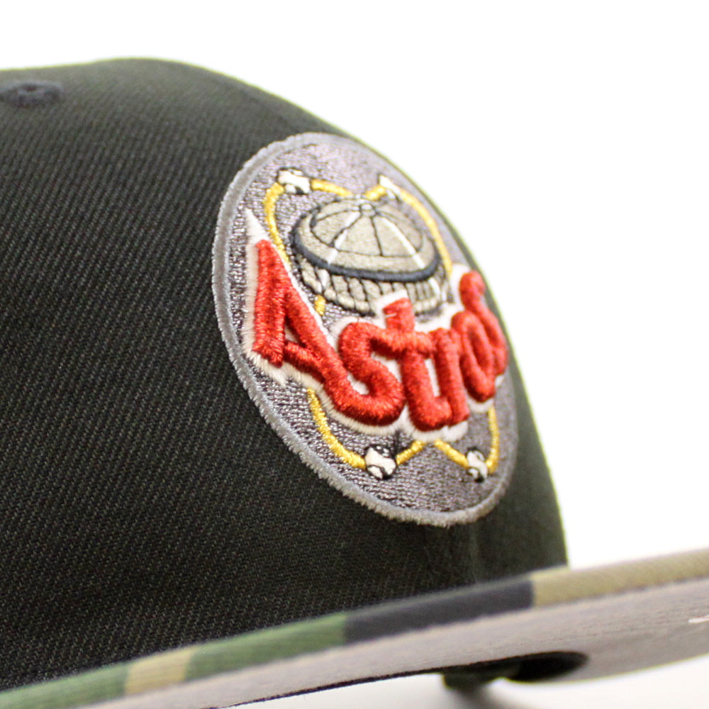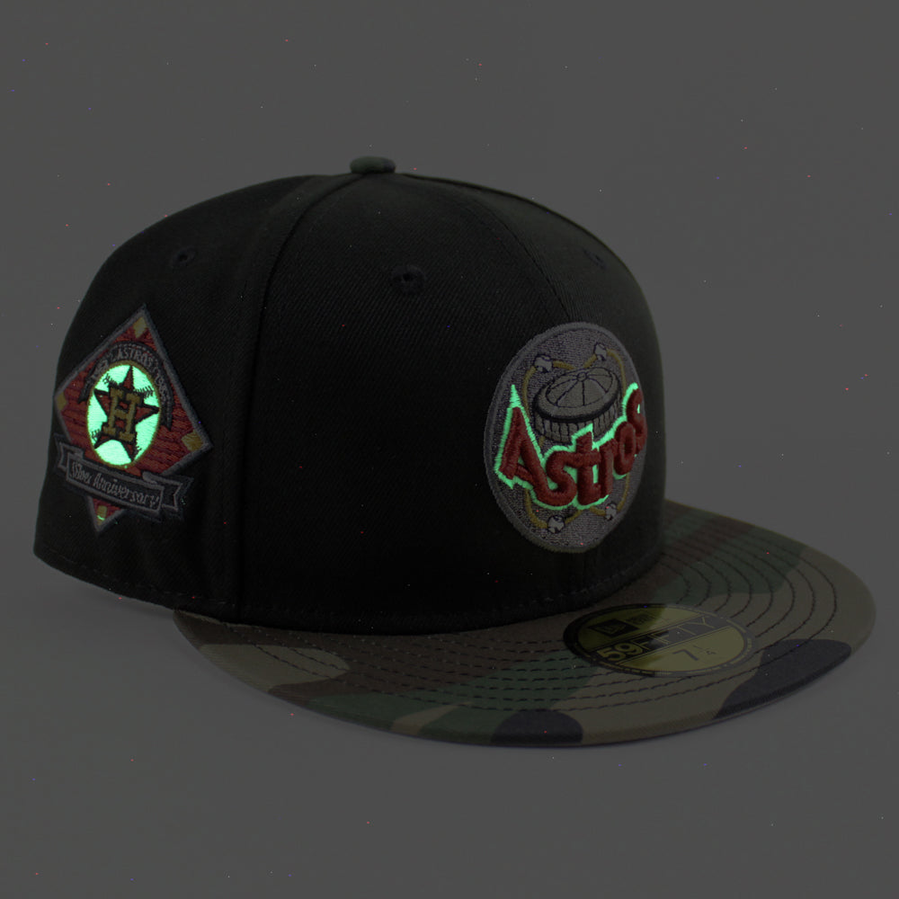 Houston Astros Silver Anniversary New Era 59Fifty Fitted Hat in Black, Camo and Gray Under Brim. Logo: Glow in the Dark