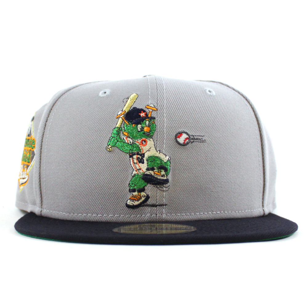 (Orbit Mascot) Houston Astros Minute Maid Park New Era 59Fifty Fitted Hat in Gray, Navy and Green Under Brim.