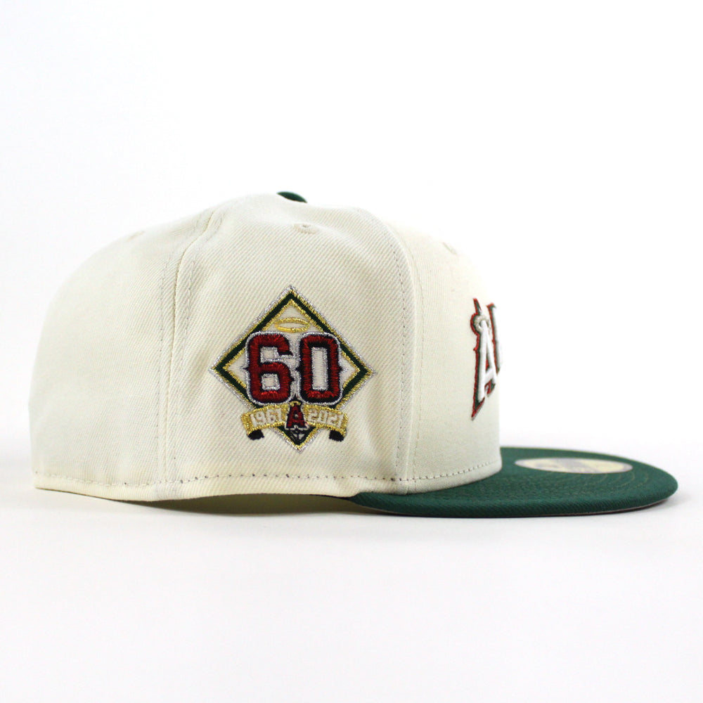 Anaheim Angels 60th Season New Era 59Fifty Fitted Cap in Chrome White, Green and Gray Under Brim.