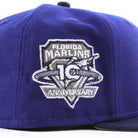 Florida Marlins 10th Anniversary New Era 59Fifty Fitted Hat in Royal Blue, Ocean Side and Gray Under brim.