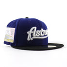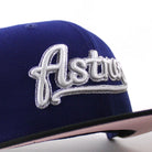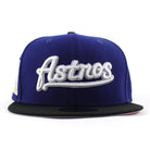 Houston Astros Inaugural Season Patch New Era 59Fifty Fitted Hat in Dark Royal Blue Black Pink Under Brim.
