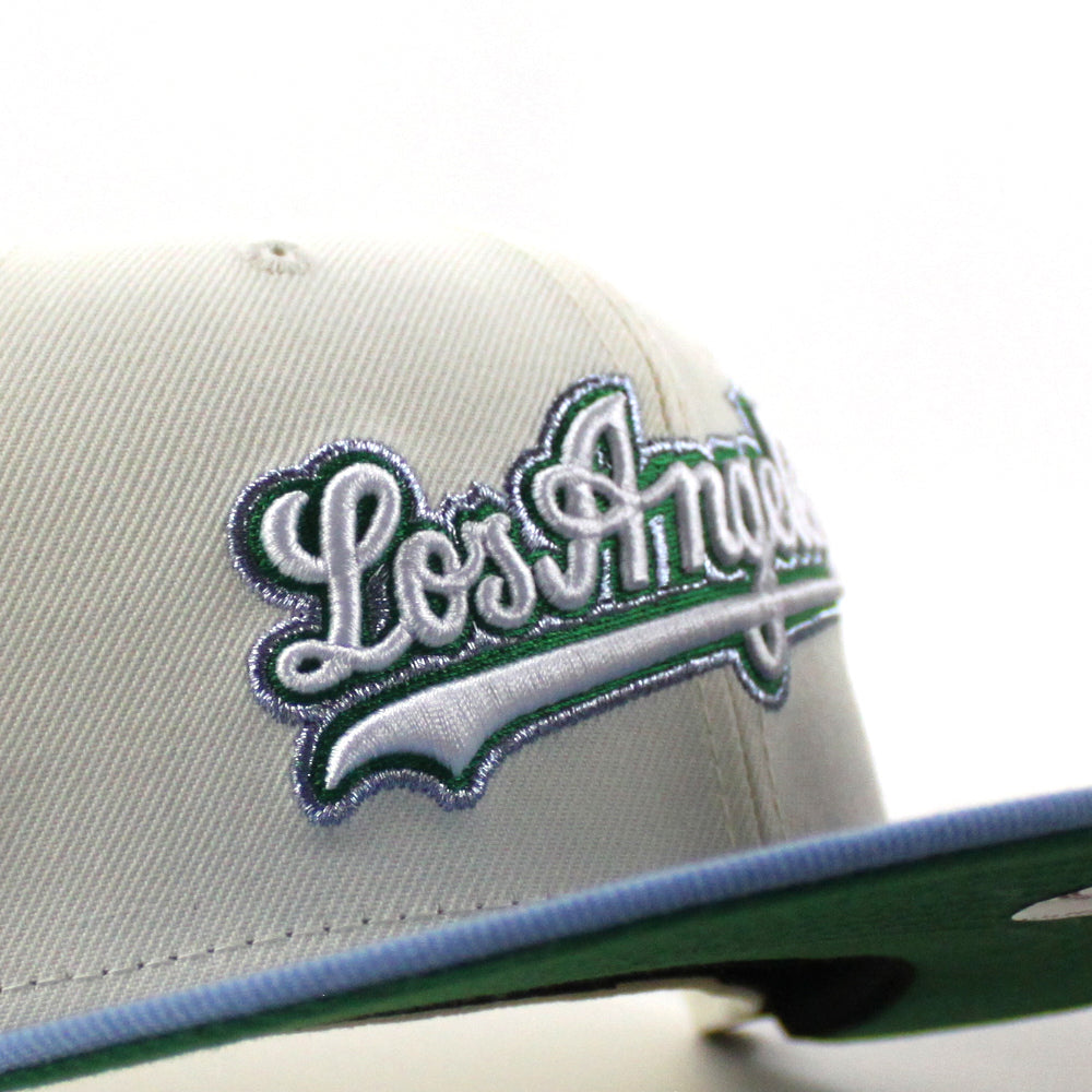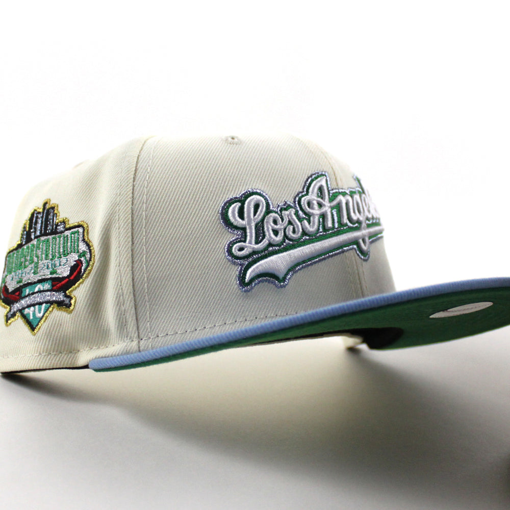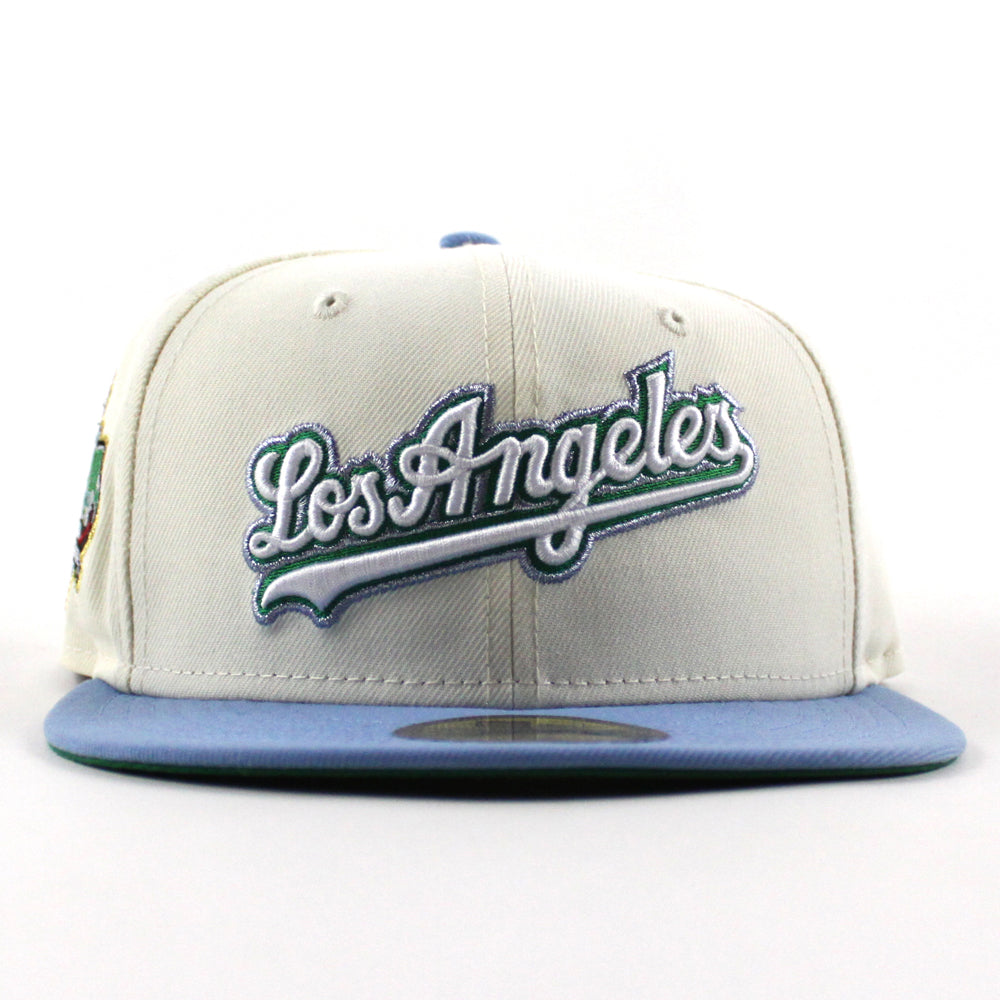 Los Angeles Dodgers 40th Anniversary New Era 59Fifty Fitted Hat in Chrome White, Sky Blue and Green Under Brim.