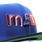 New York Mets 50TH Anniversary New Era Fitted Hat in Azure Blue, Black and Green Under Brim.