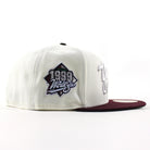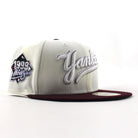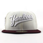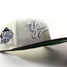 New York Yankees 1999 World Series New Era 59Fifty Fitted Hat in Chrome White, Maroon and Green Under Brim.