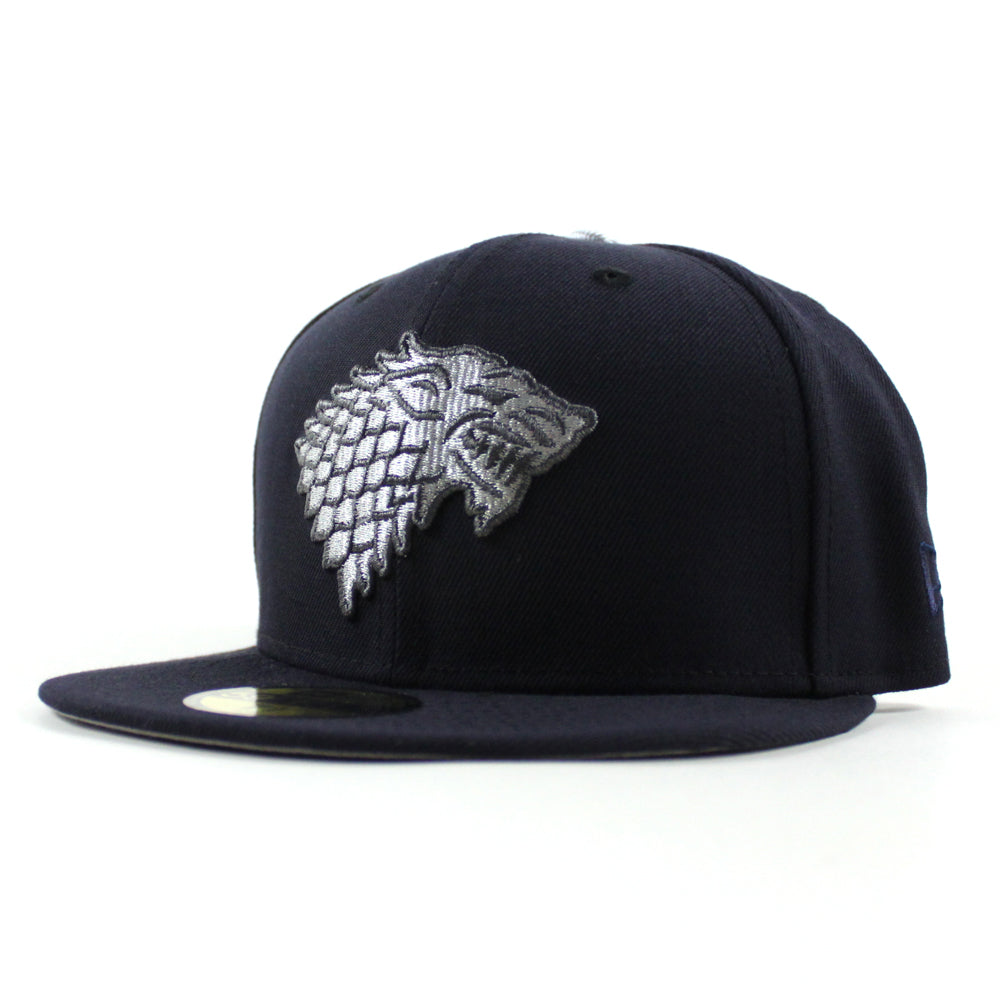 Game of Thrones House Stark of Winterfell Direwolf New Era 59Fifty Fitted Hat (Navy Gray Under Brim)
