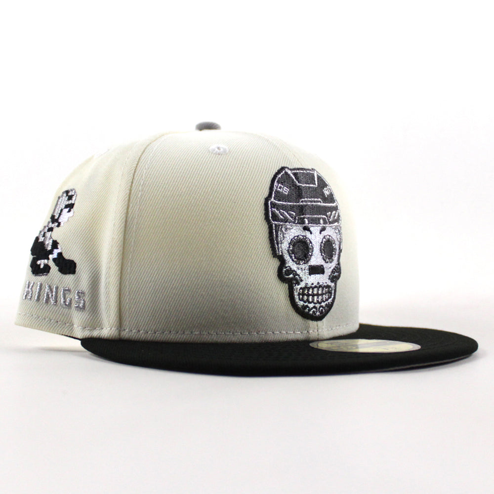 Los Angeles Kings Skull Mask 8 Bit Patch New Era 59Fifty Fitted Hat (Chrome White Black Gray Under brim)