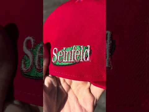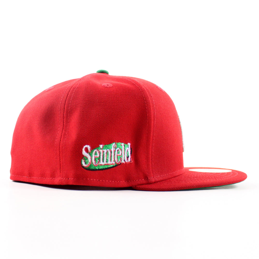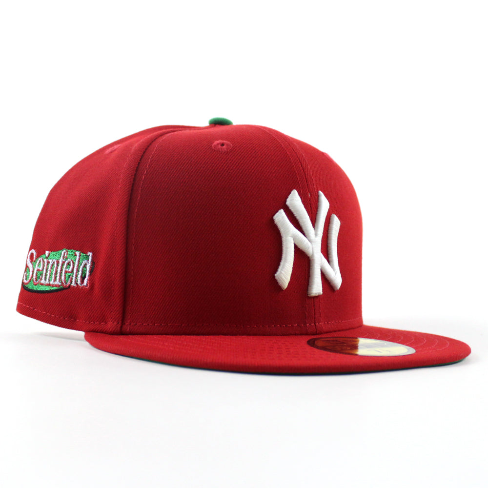New York Yankees x SEINFELD New Era 59Fifty Fitted Hat in Scarlet Red Green Under Brim.