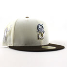 Seattle Mariners Ichiro Suzuki Patch New Era 59Fifty Fitted Hat in Chrome White, Walnut Brown and Gray Under Brim.