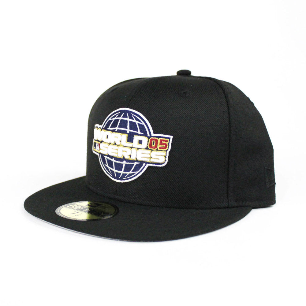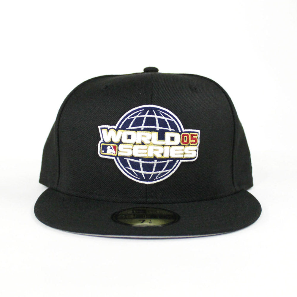 Chicago White Sox 2005 World Series Champion Patch 59Fifty New Era Fitted Hat in team color (black) and gray under brim white inside & on the rear has the flat MLB batter man logo.