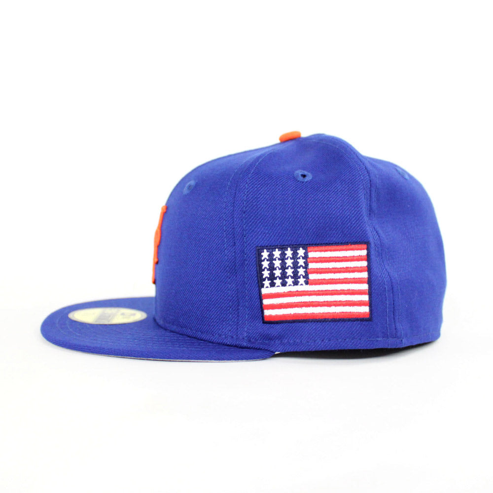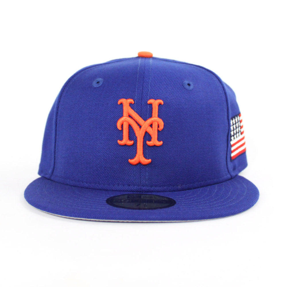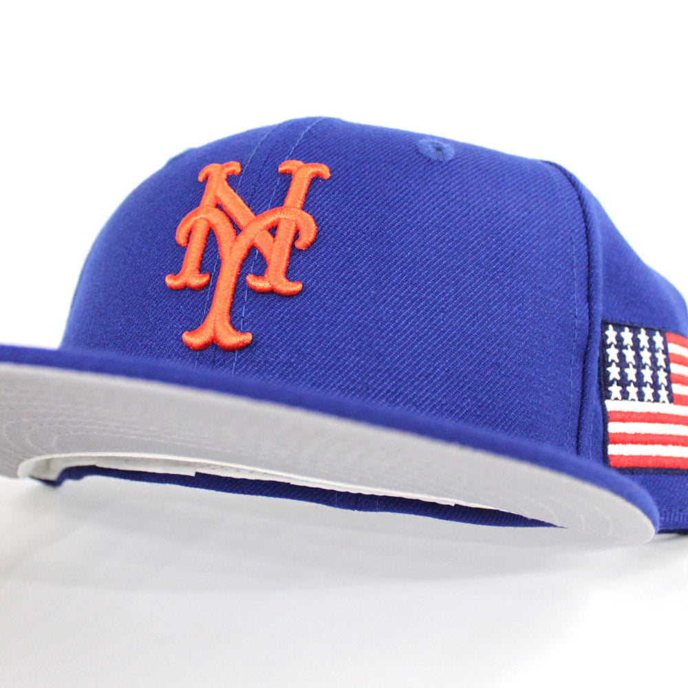 911 New York Mets 2001 New Era 59Fifty Fitted Hat in NAVY Blue, USA Flag with Gray under brim. Don't Sleep.
