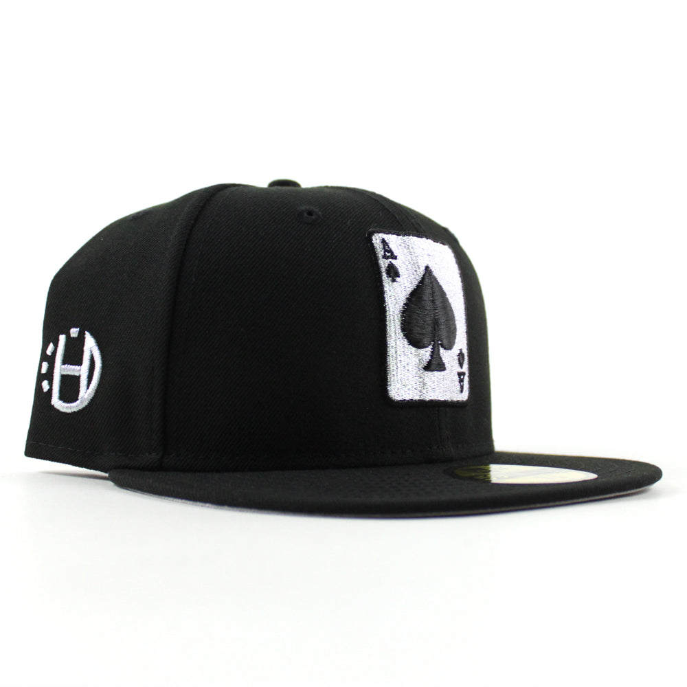 Ace of spades Card Halftime Patch New Era 59Fifty Fitted Hat in Black With Gray Under Brim.