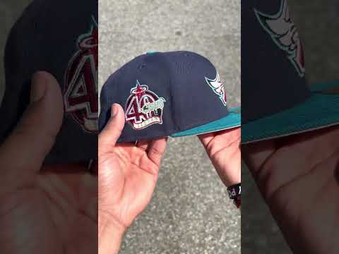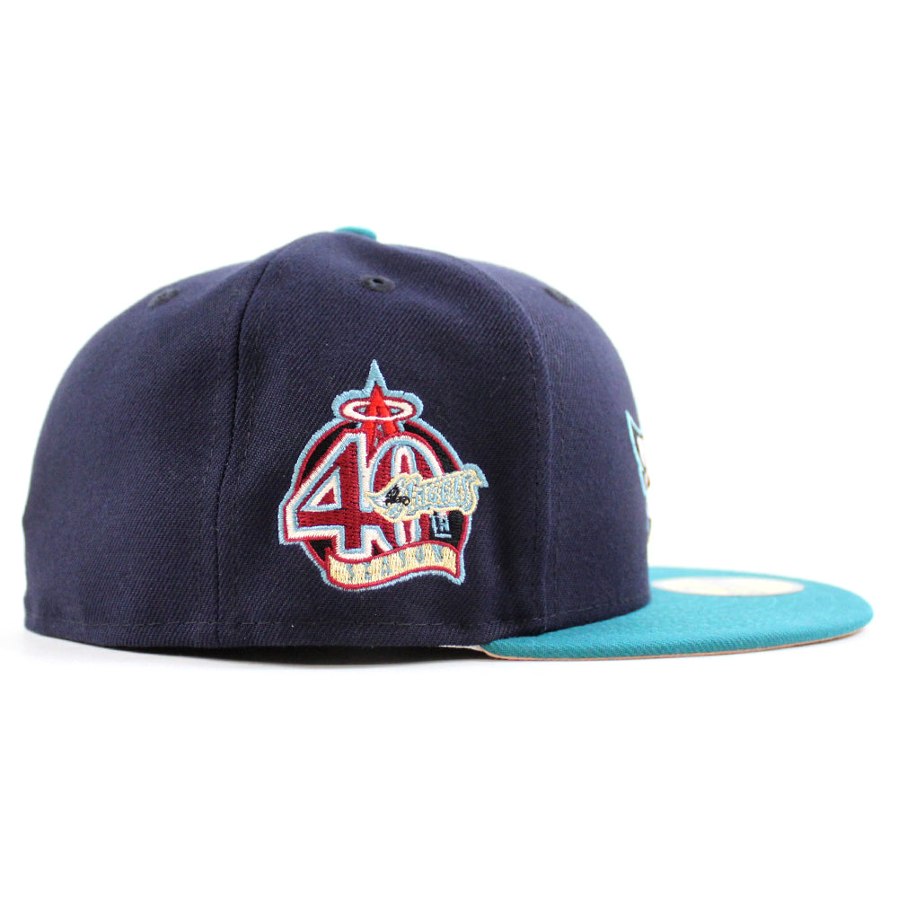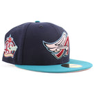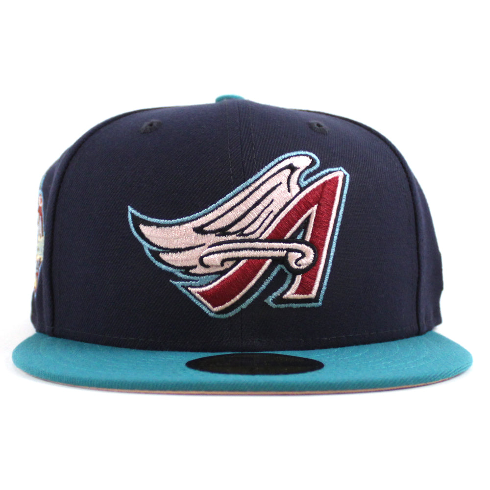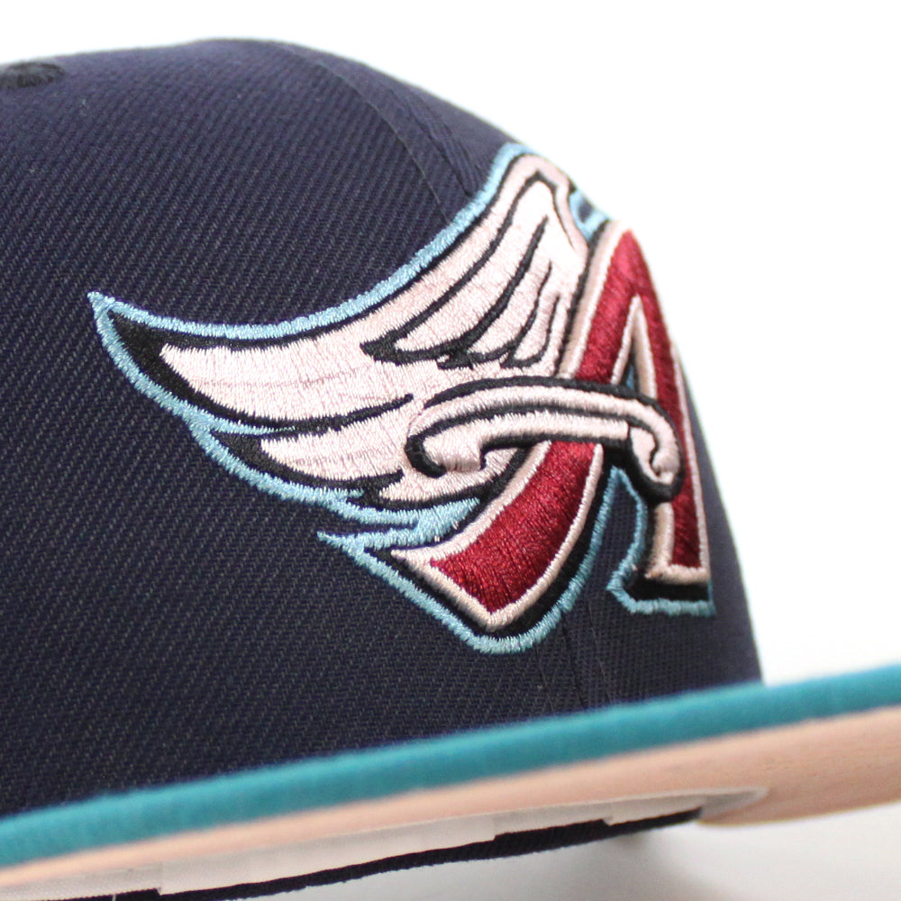 Anaheim Angels 40th New Era 59Fifty Fitted Cap in Navy, Aqua and Blush Sky Under Brim.