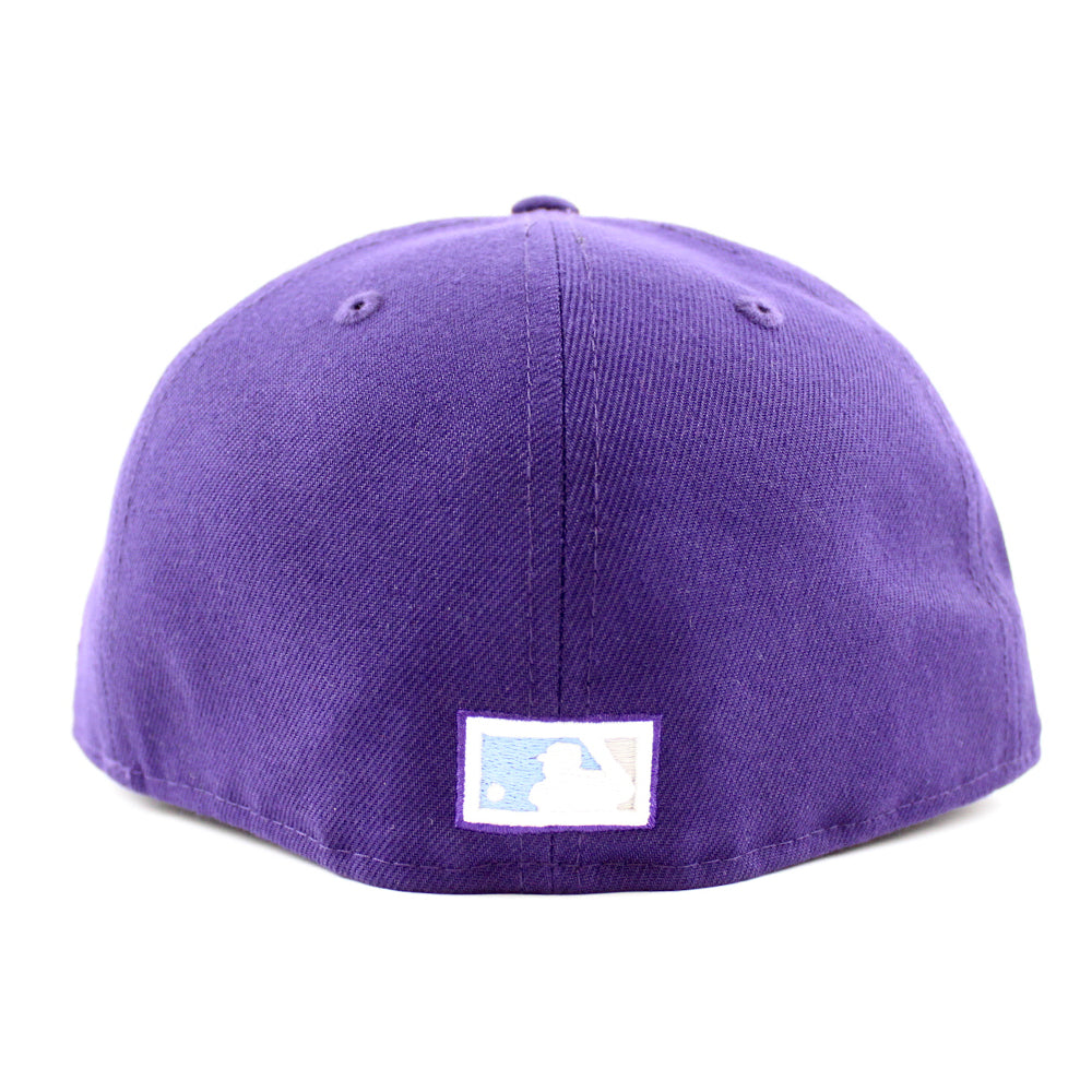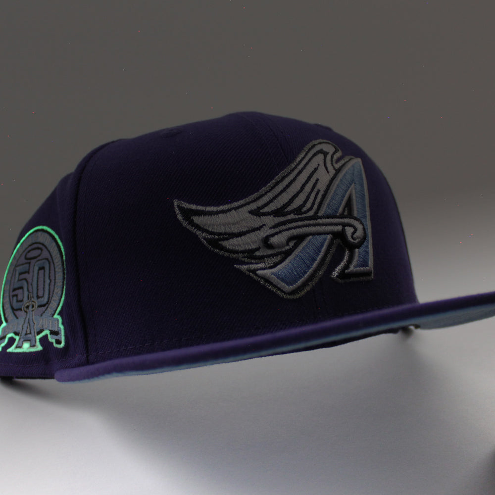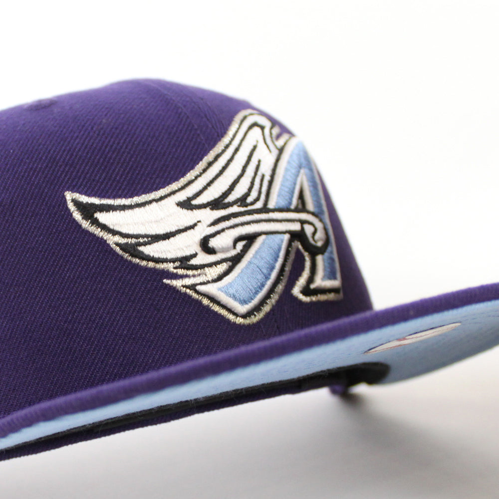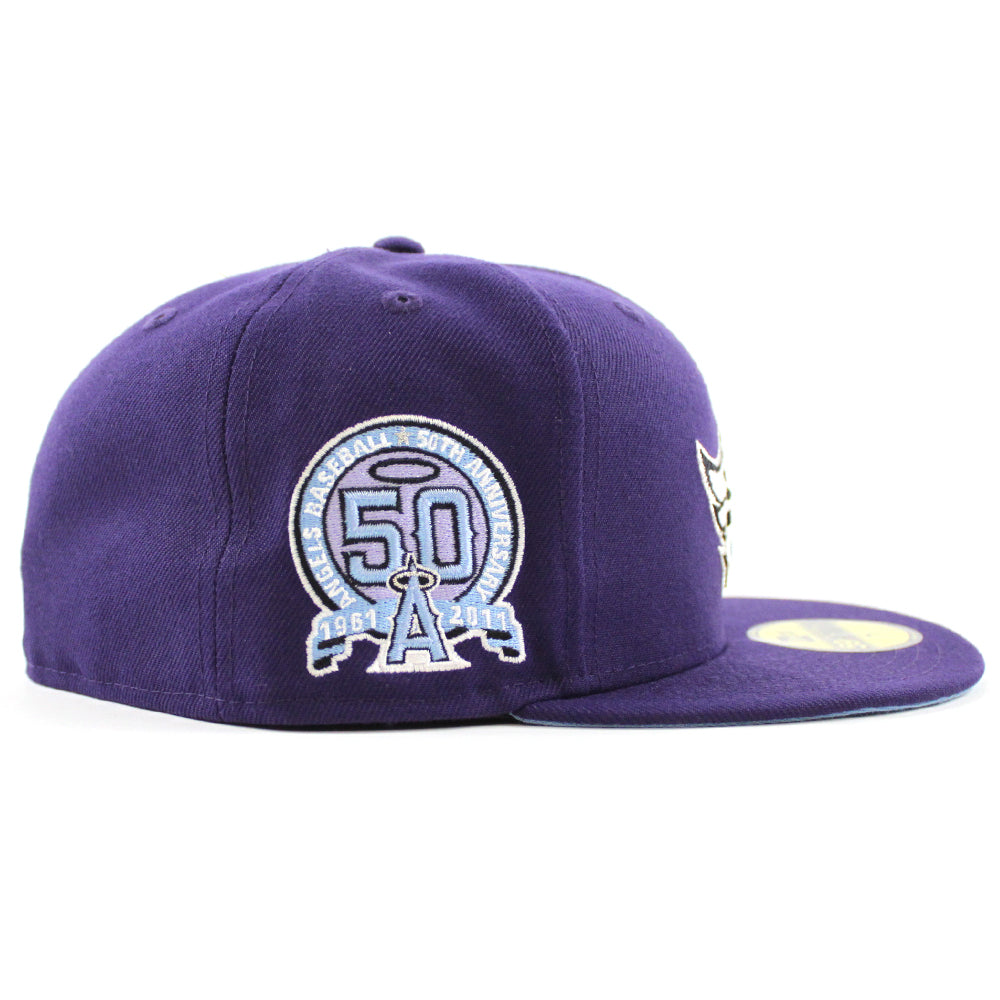 Anaheim Angels 50th Anniversary New Era 59Fifty Fitted Hat is Purple & Sky Blue Under Brim.