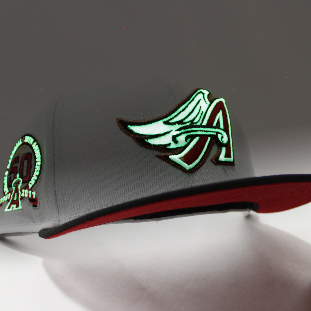 Anaheim Angels 50th Anniversary New Era 59Fifty Fitted Hat (GITD White Black Red Under Brim)