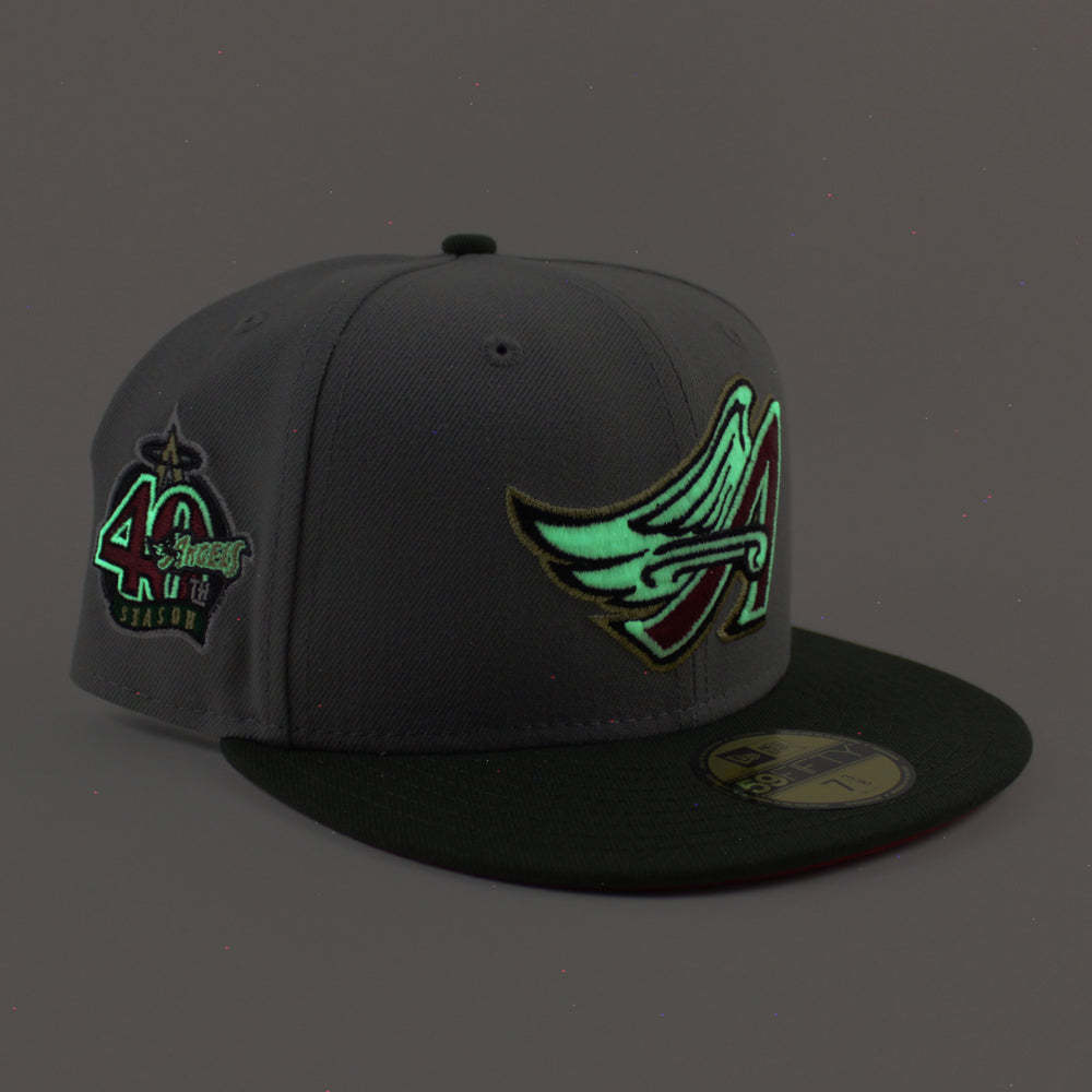 Anaheim Angels 40th Season New Era 59Fifty Fitted Hat (Glow in the Dark Misty SeaWeed Red Under Brim)
