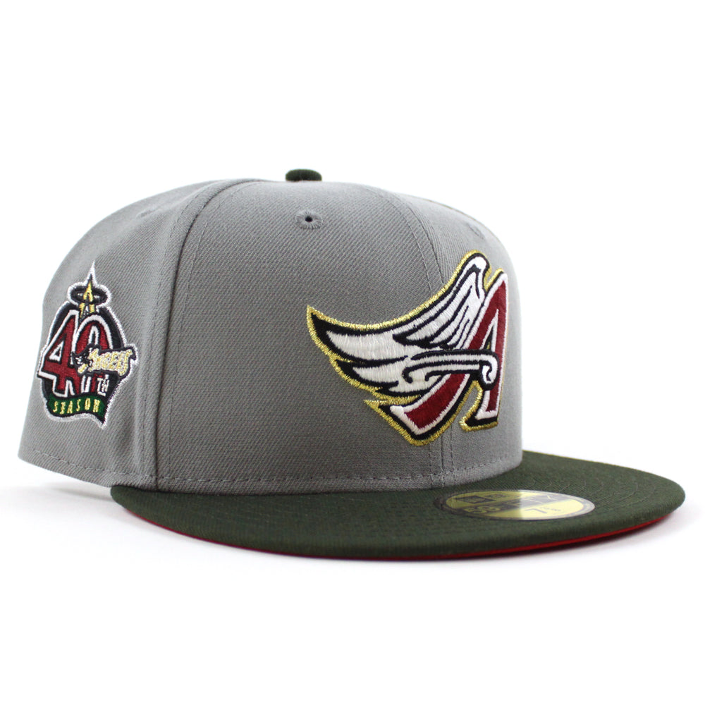 Anaheim Angels 40th Season New Era 59Fifty Fitted Cap in Misty, Seaweed and Red Under Brim.