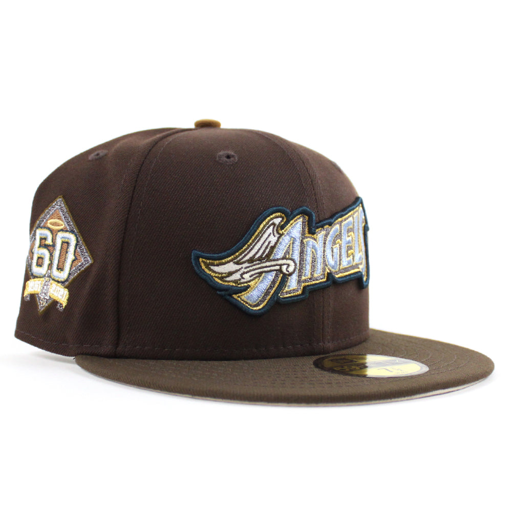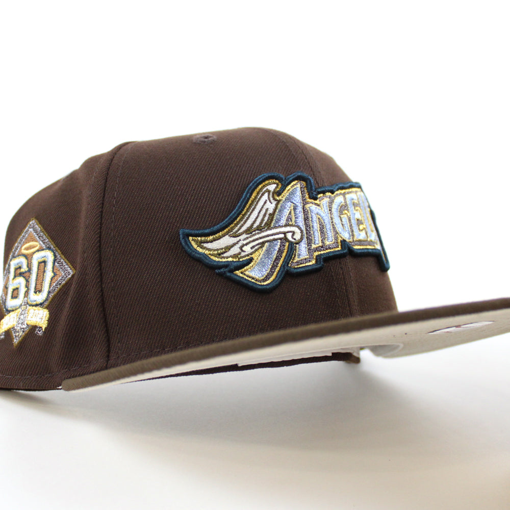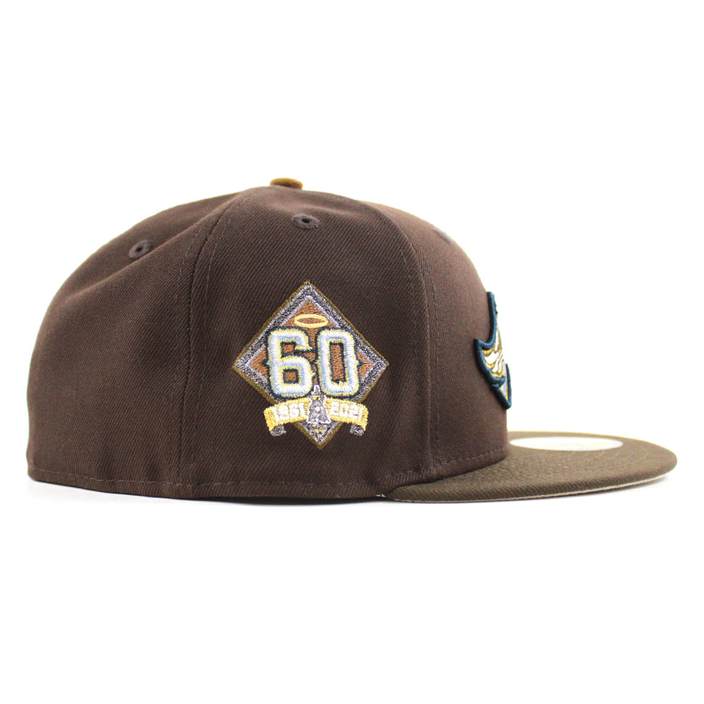 Anaheim Angels 60th Anniversary New Era 59Fifty Fitted Cap in Burnt Wood, Walnut and Cream Under Brim.