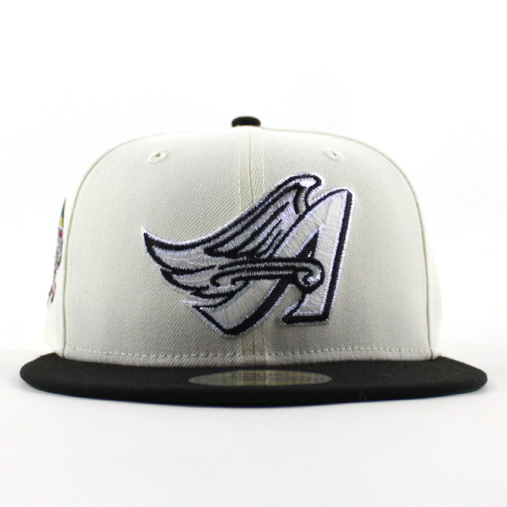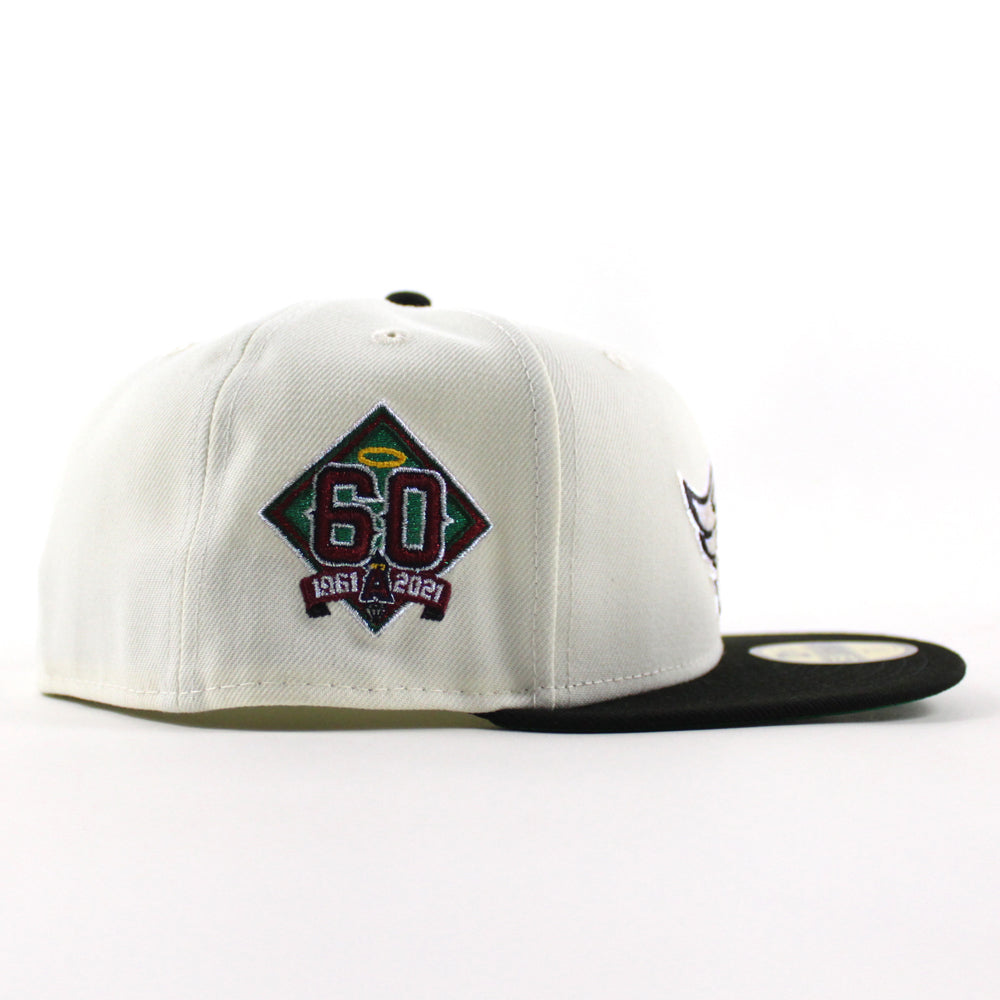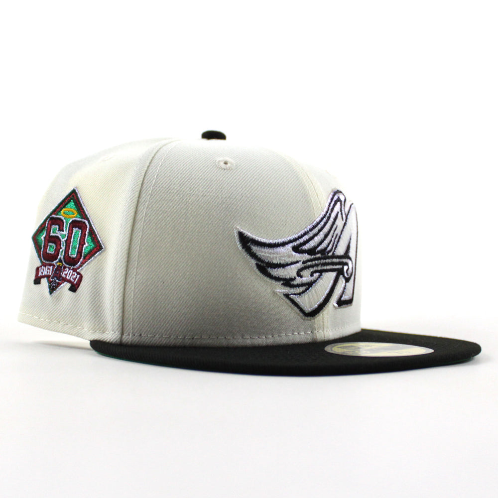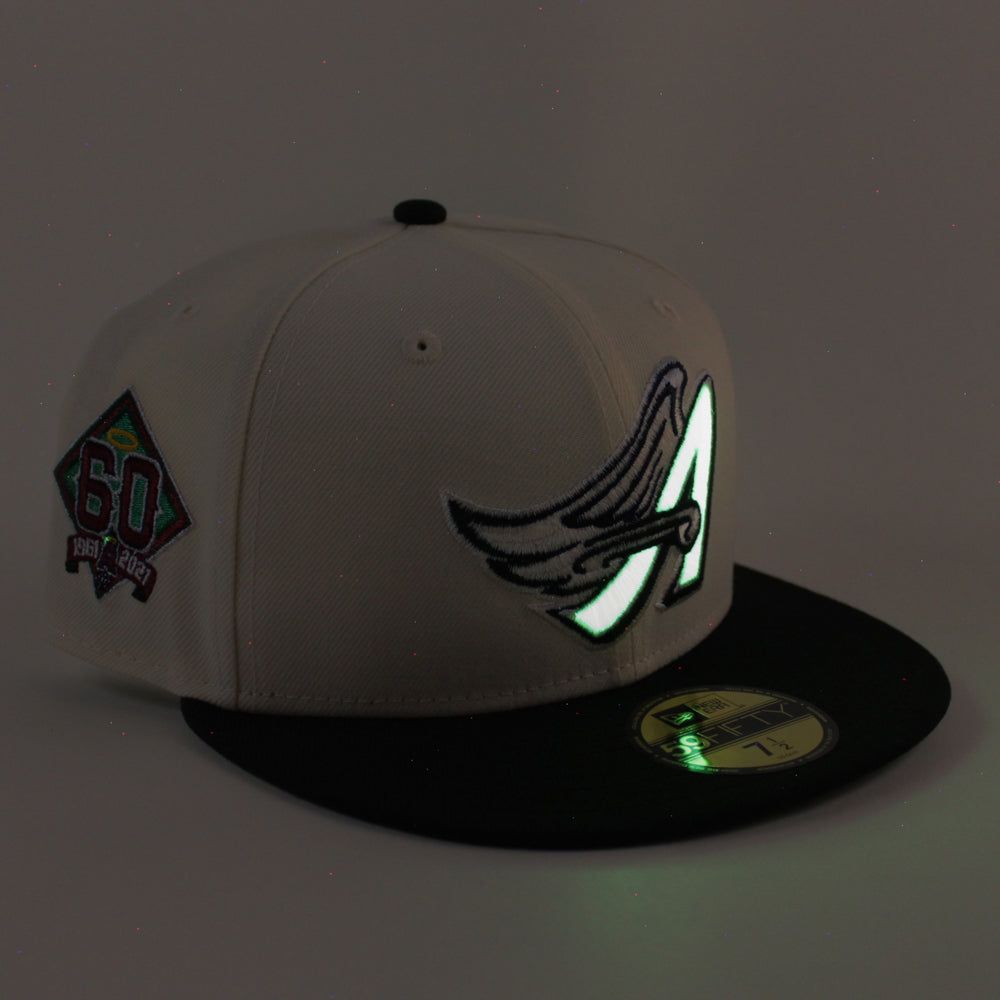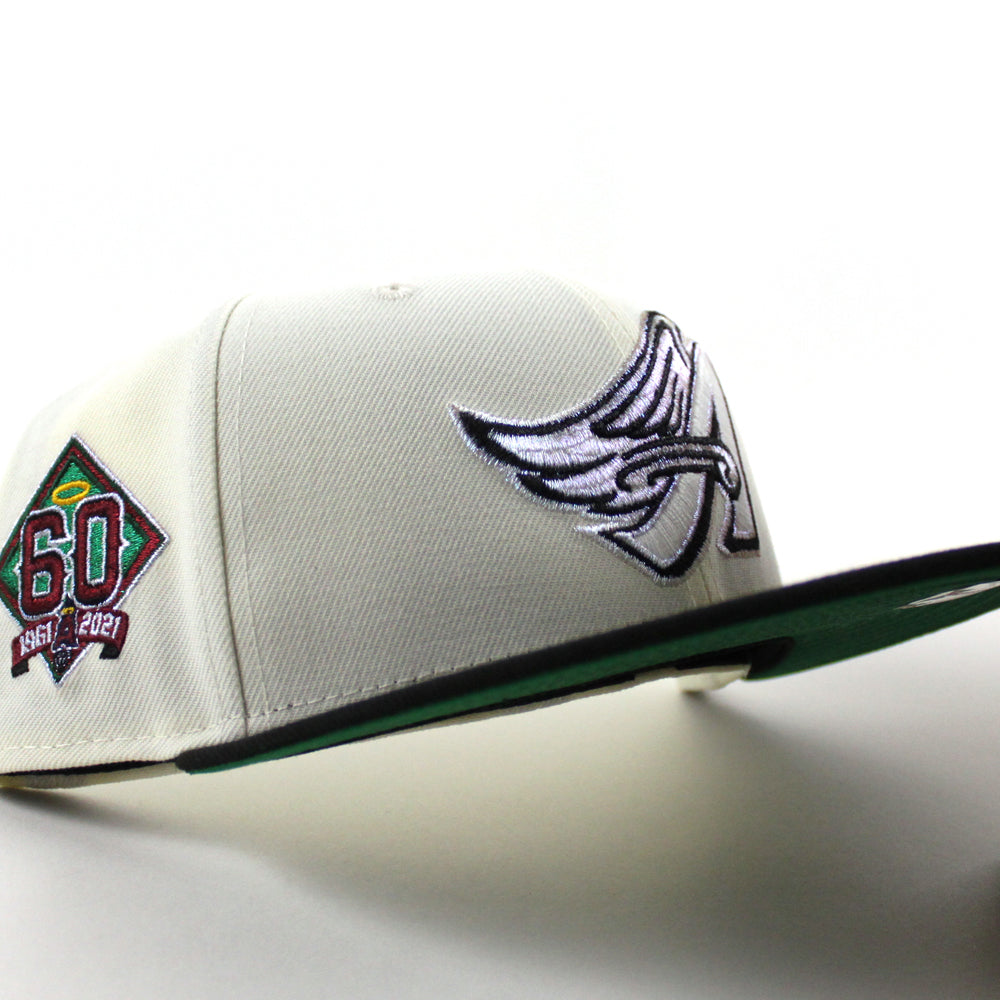 Anaheim Angels 60th Anniversary New Era 59Fifty Fitted Cap in Chrome White, Black and Green Under Brim.