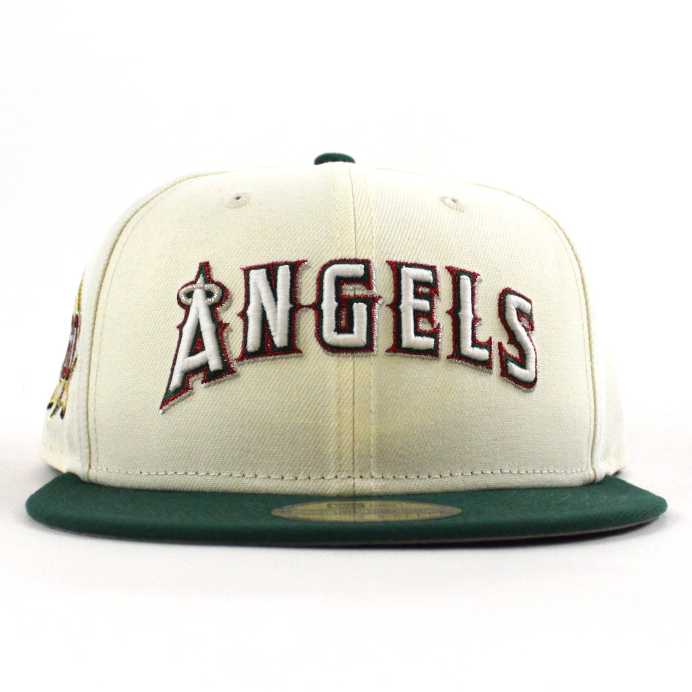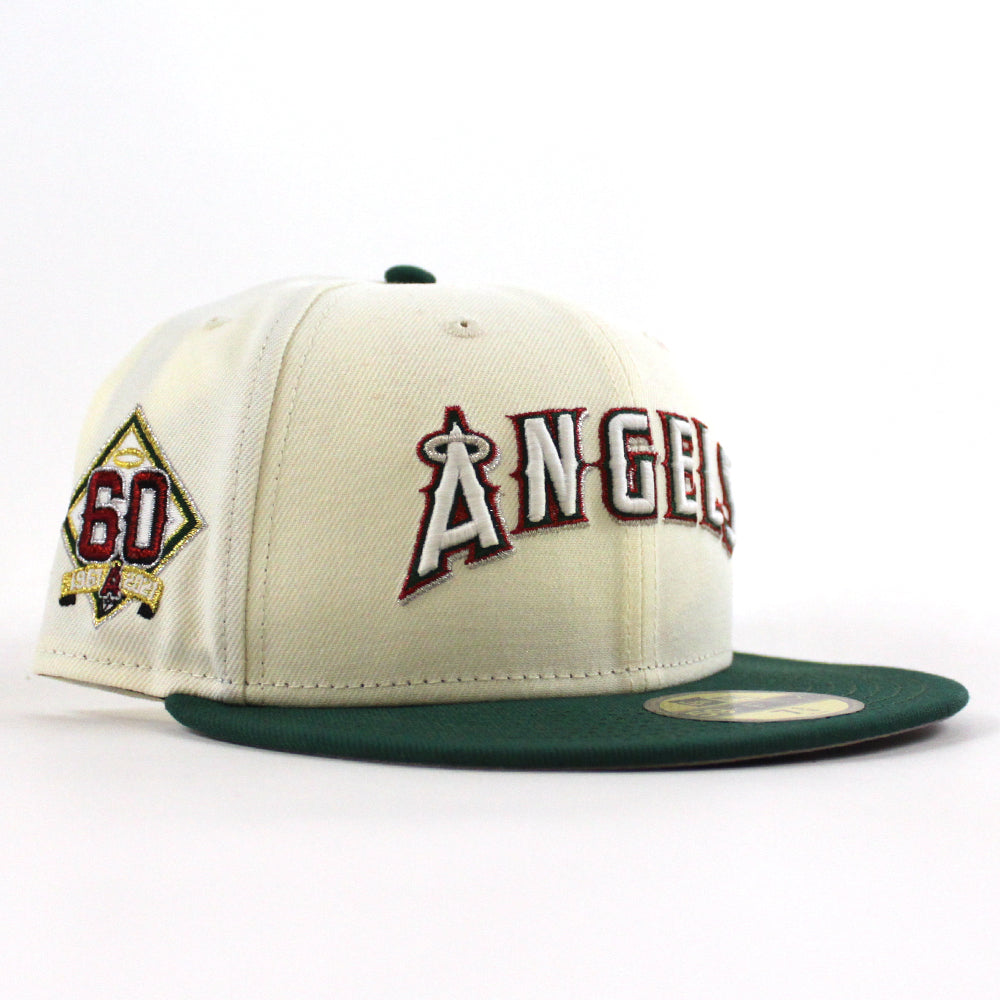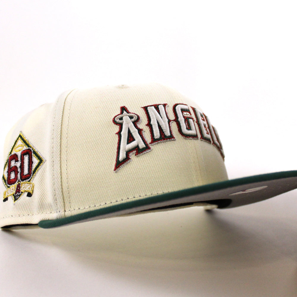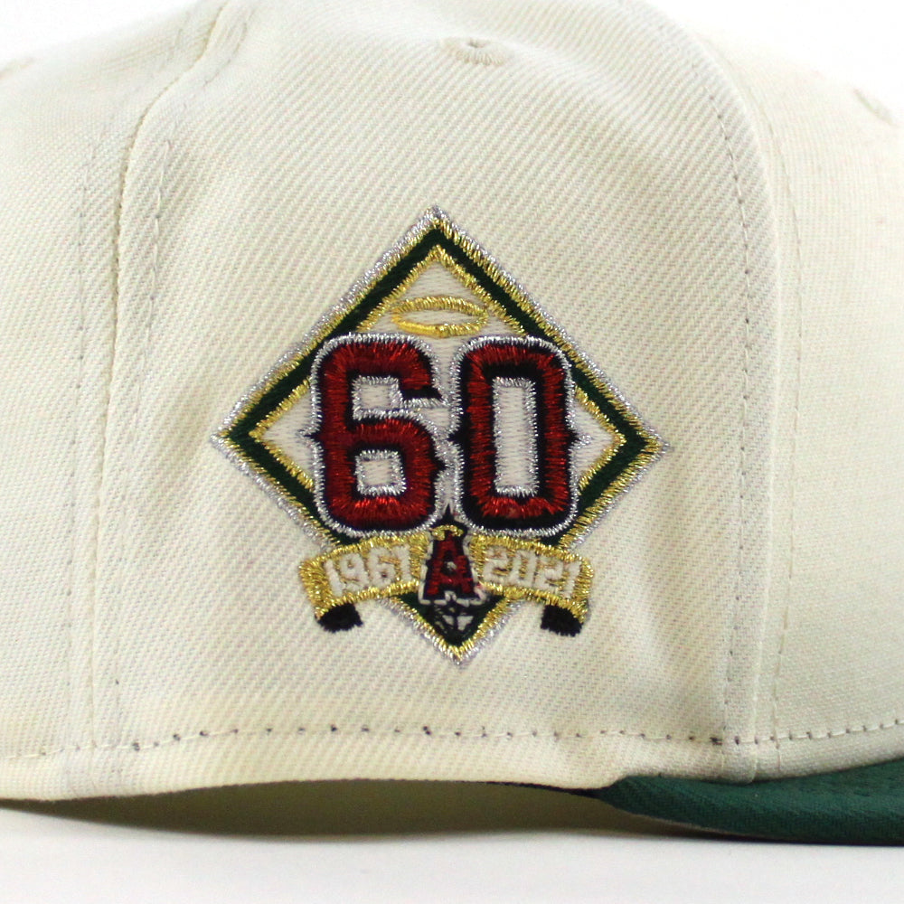 Anaheim Angels 60th Season New Era 59Fifty Fitted Cap in Chrome White, Green and Gray Under Brim.