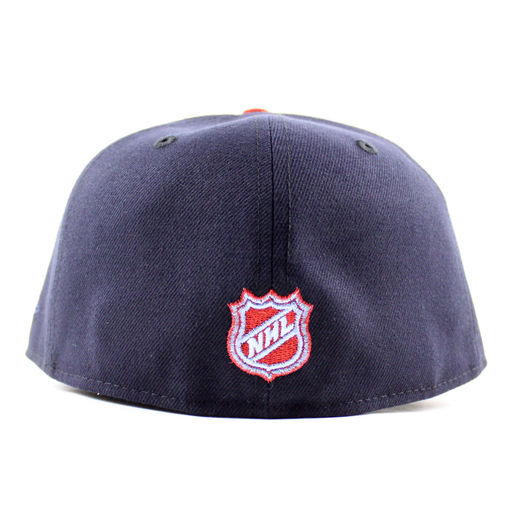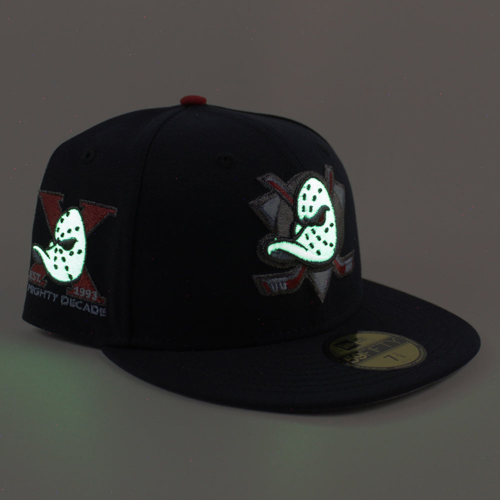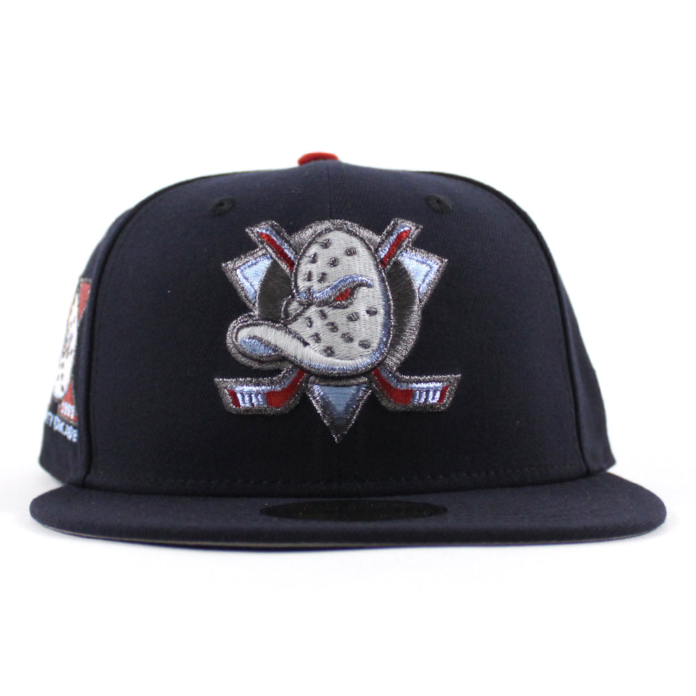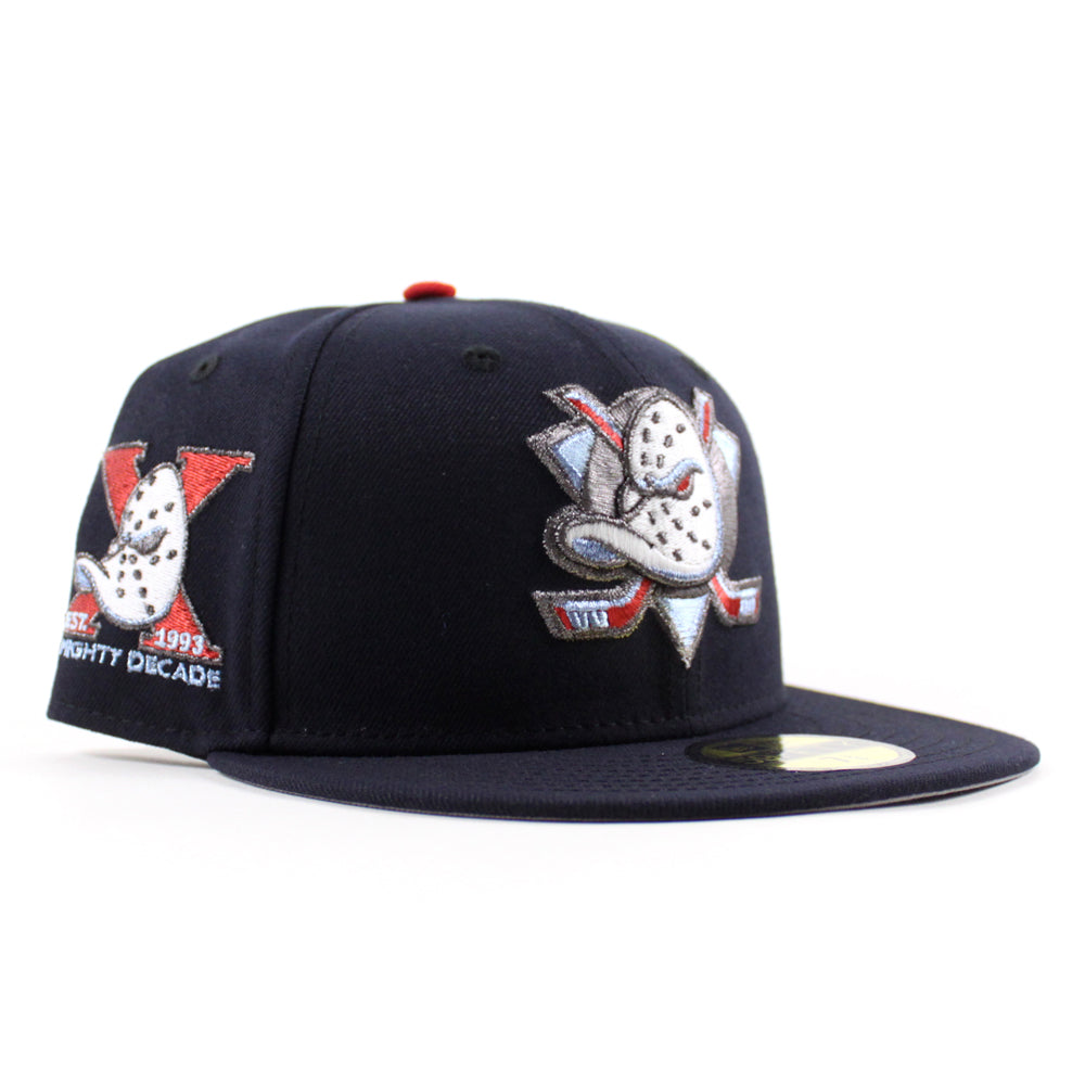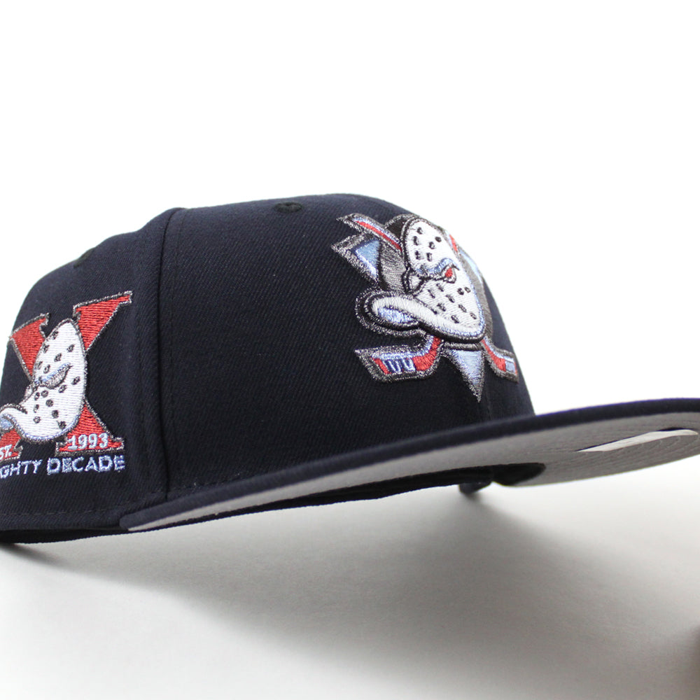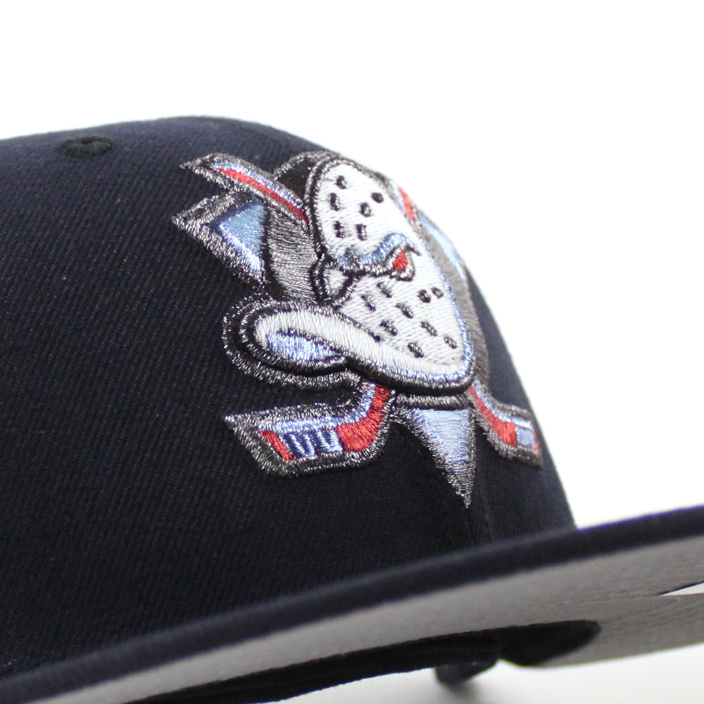 Anaheim Ducks Mighty Decade New Era 59Fifty Fitted Hat in Navy Blue and Gray Under brim.