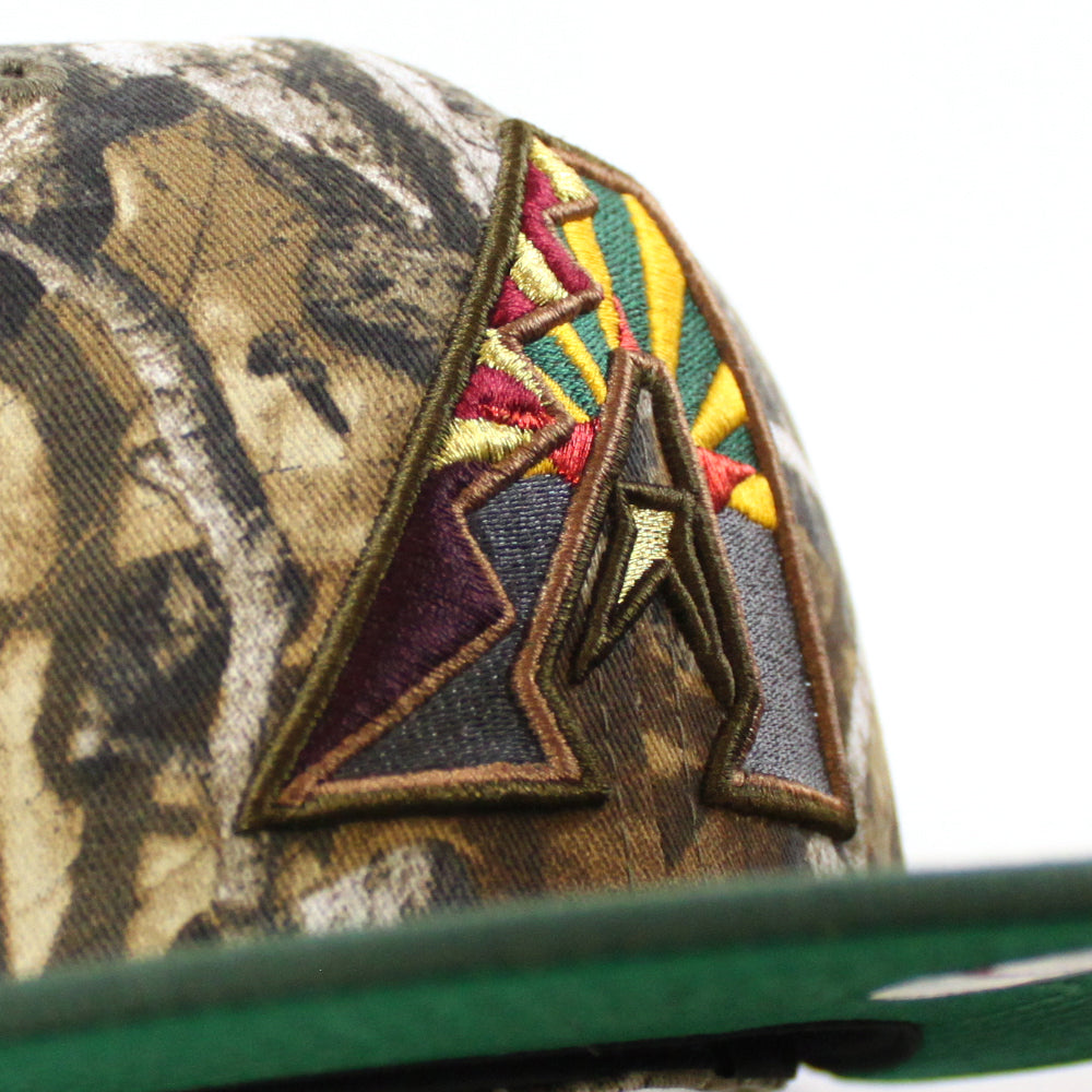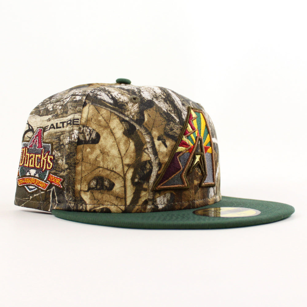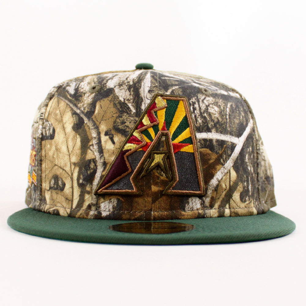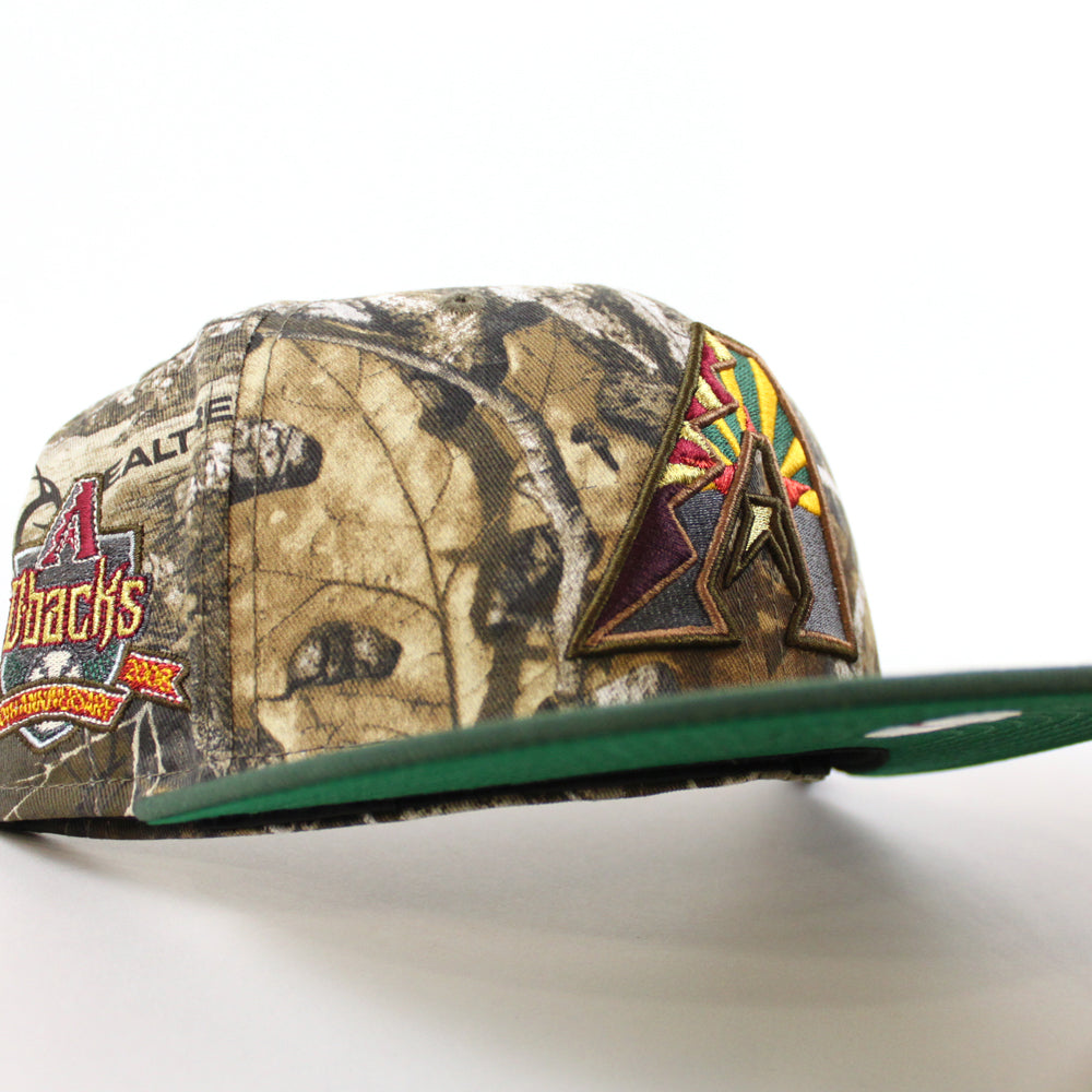 Arizona Diamondbacks 10th Anniversary New Era 59Fifty Fitted Hat in Real Tree Camo, Cilantro Green and Green Brim.