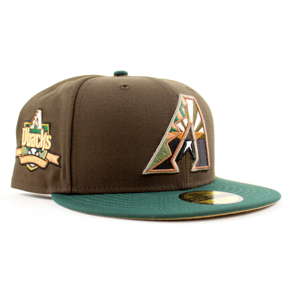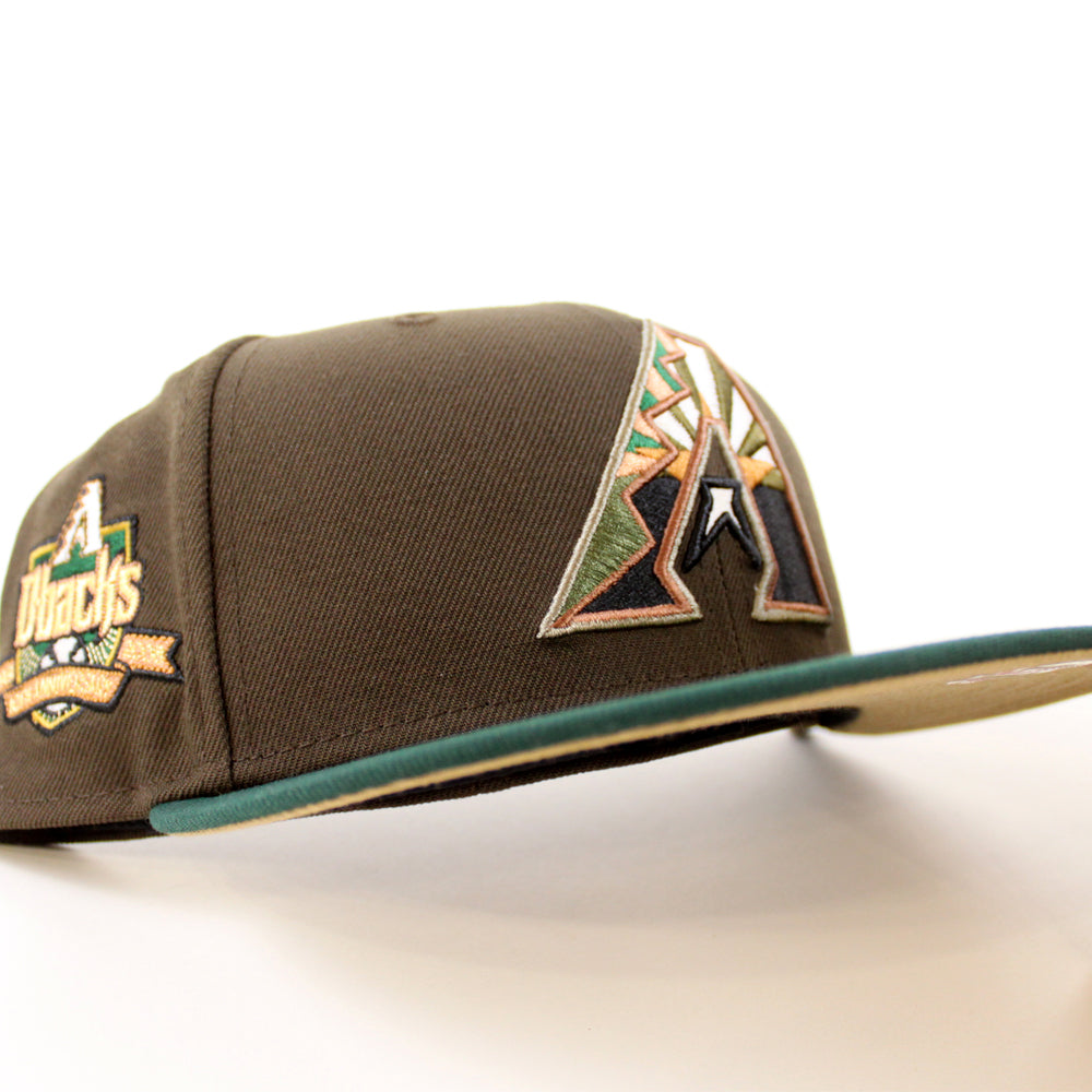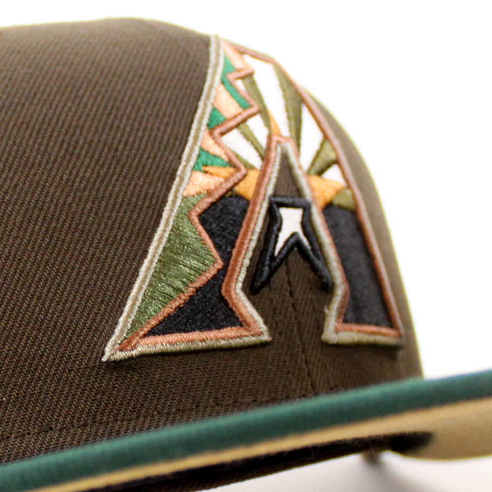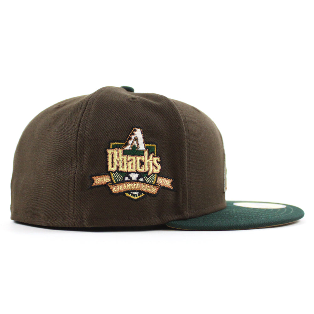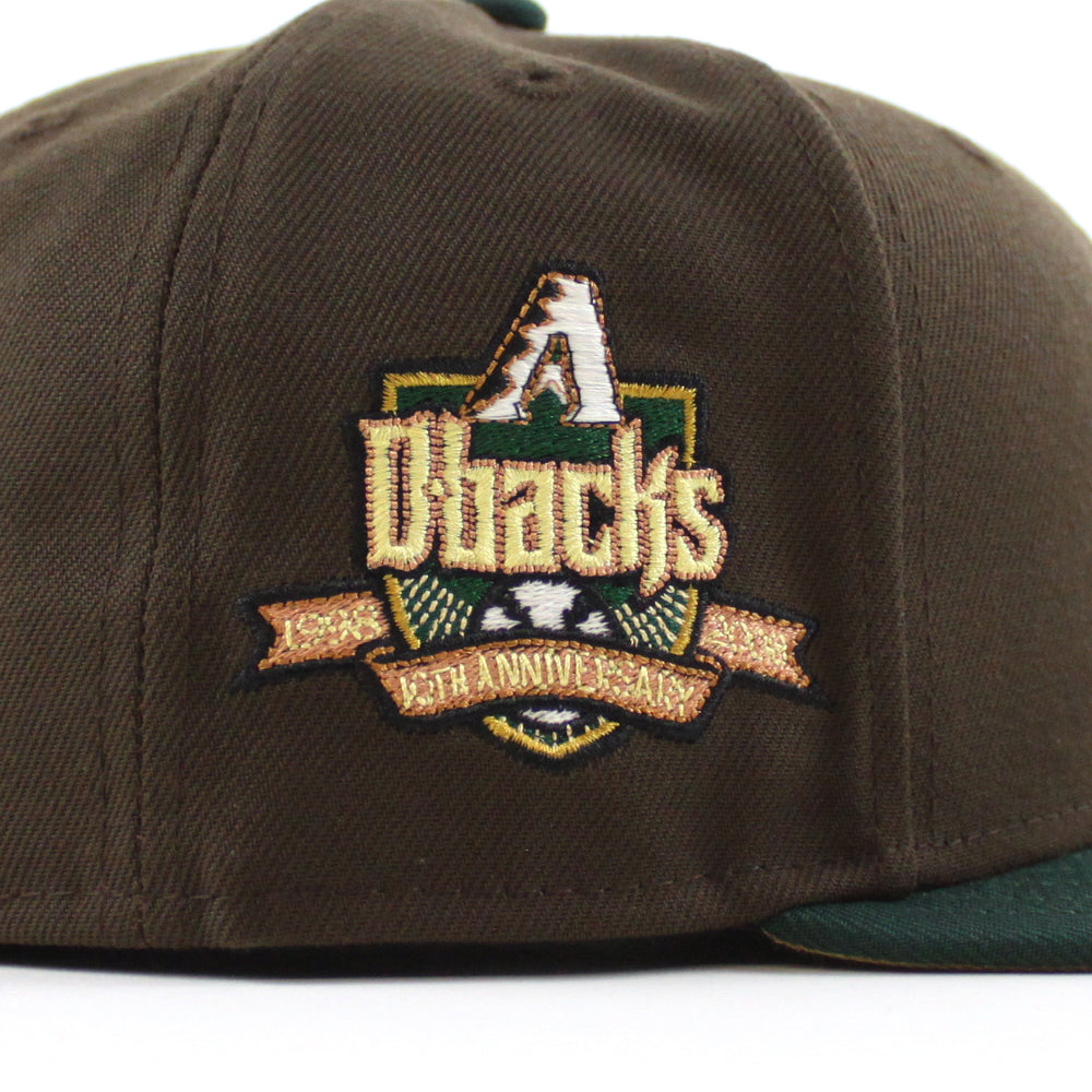 Arizona Diamondbacks 10th Anniversary New Era 59Fifty Fitted Hat in Walnut, Green and Khaki Under Brim.