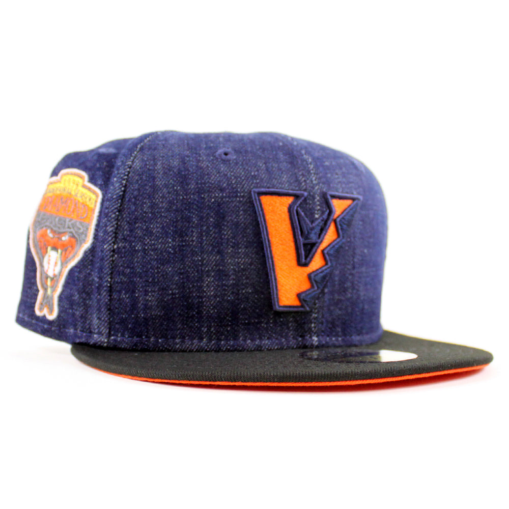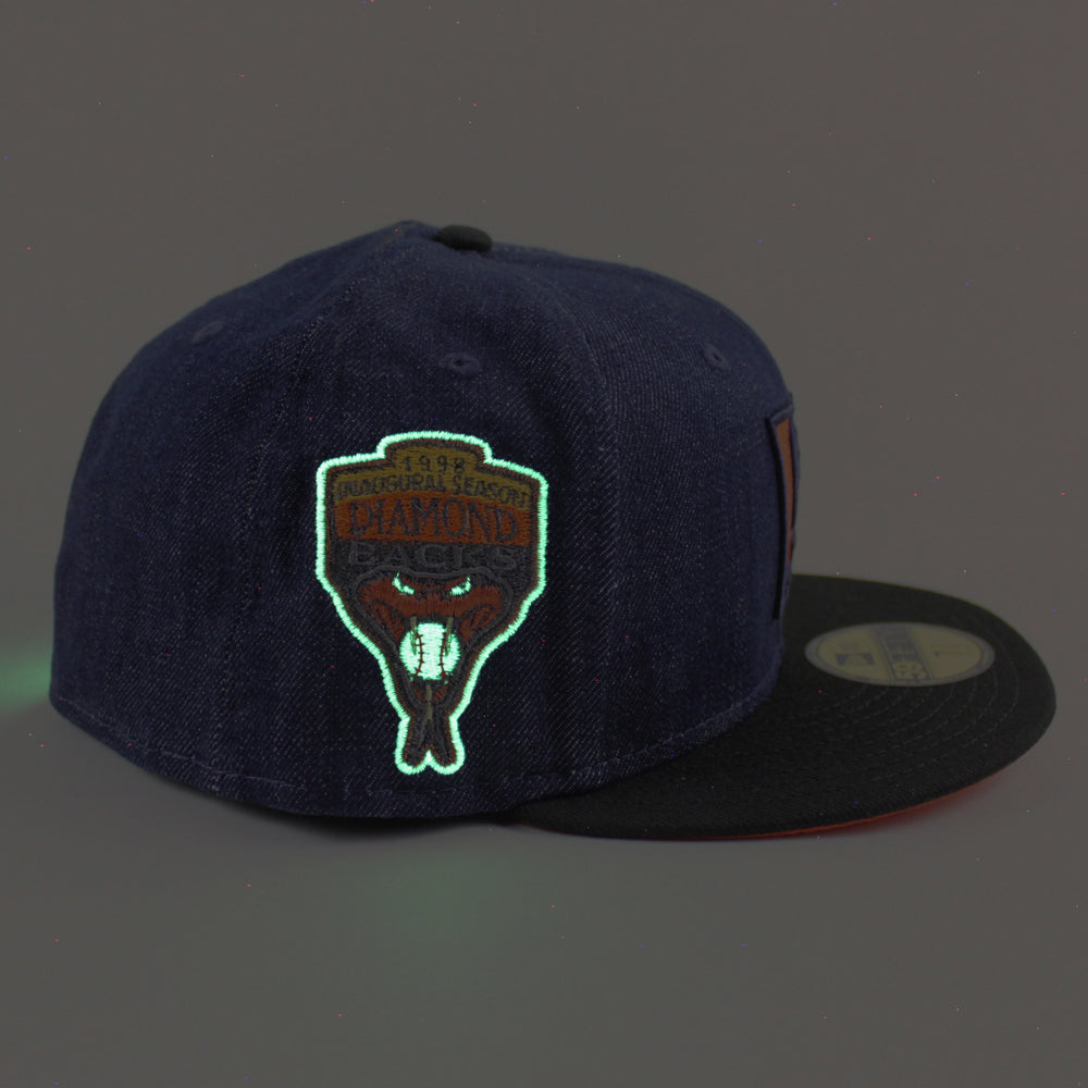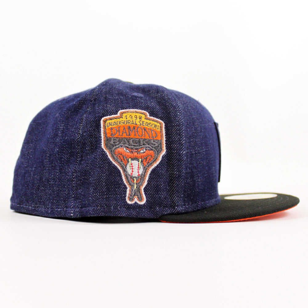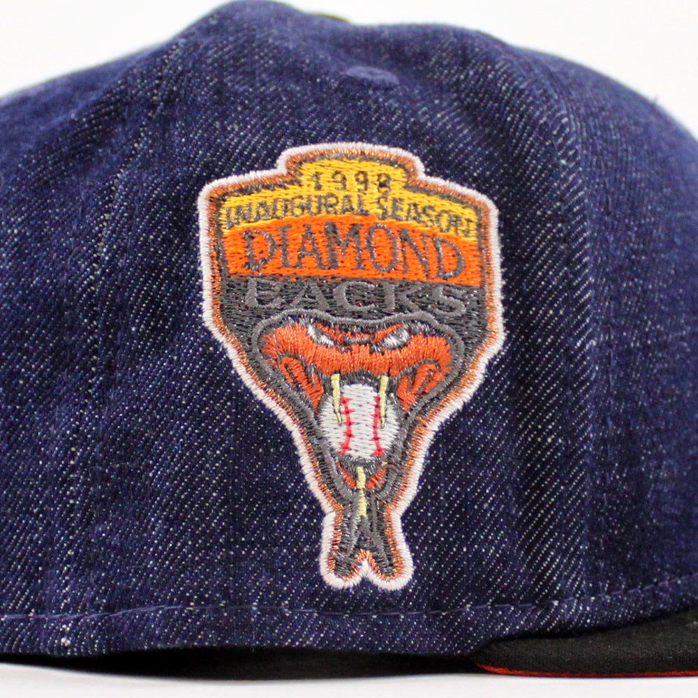 Arizona Diamondbacks 1998 inaugural Season New Era 59Fifty Fitted Hat in Denim, Black and Orange Under Brim.