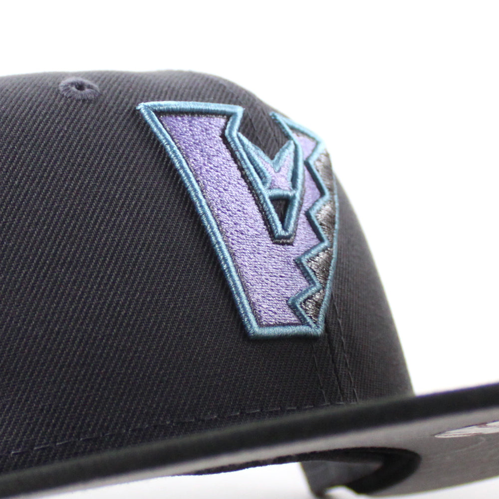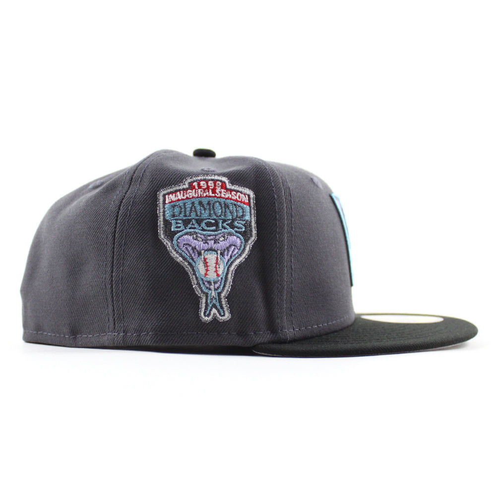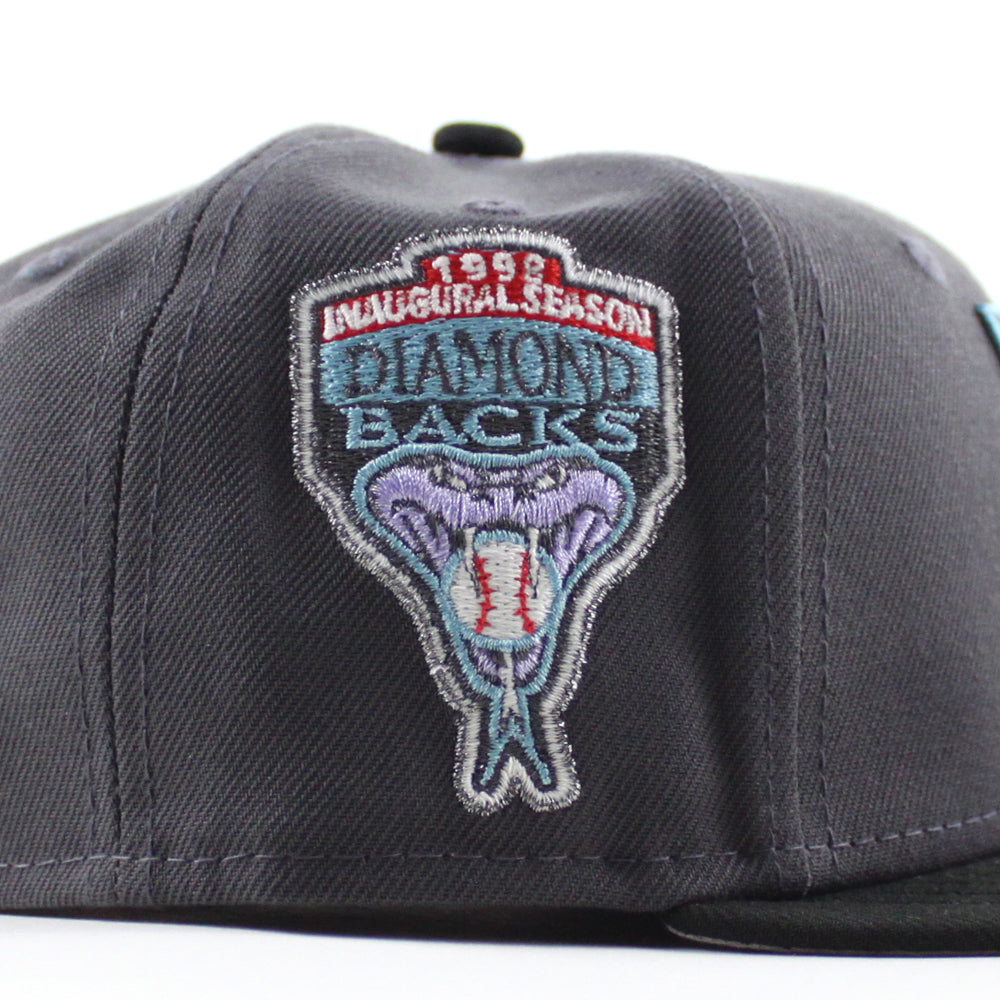 Arizona Diamondbacks 1998 Inaugural Season New Era 59Fifty Fitted Hat in Graphite, Black and Gray Under Brim.