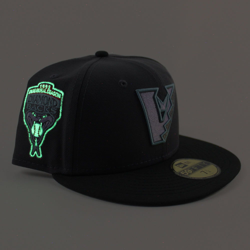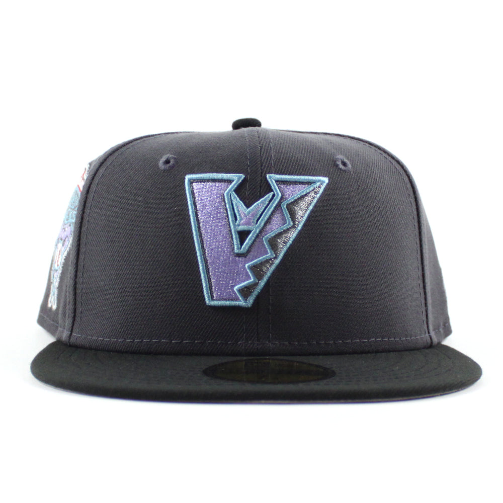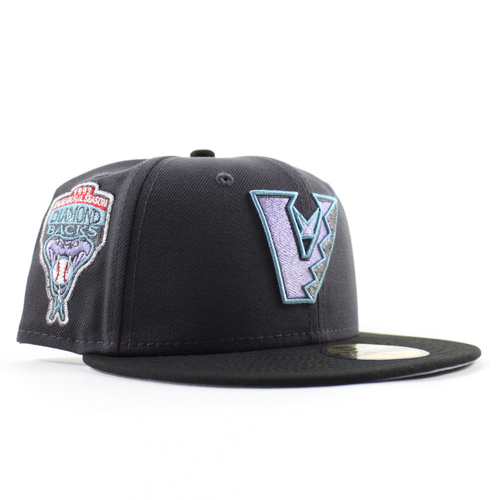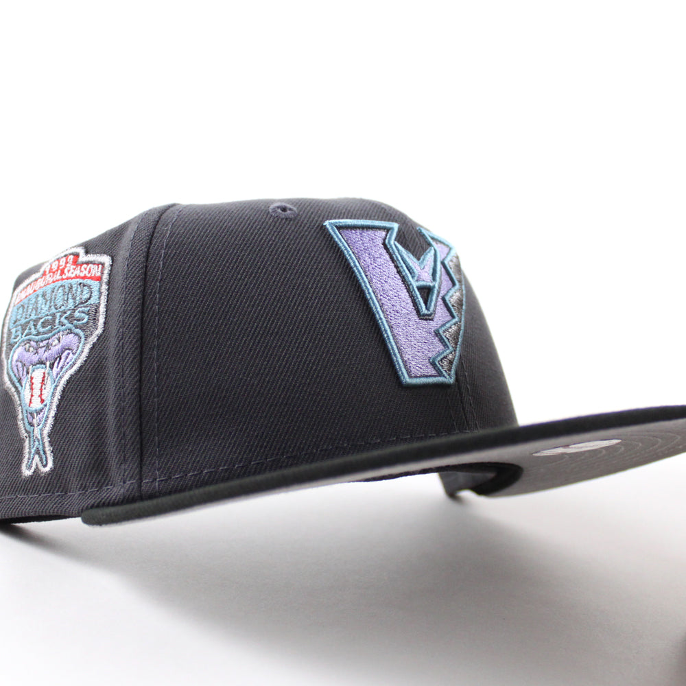 Arizona Diamondbacks 1998 Inaugural Season New Era 59Fifty Fitted Hat in Graphite, Black and Gray Under Brim.