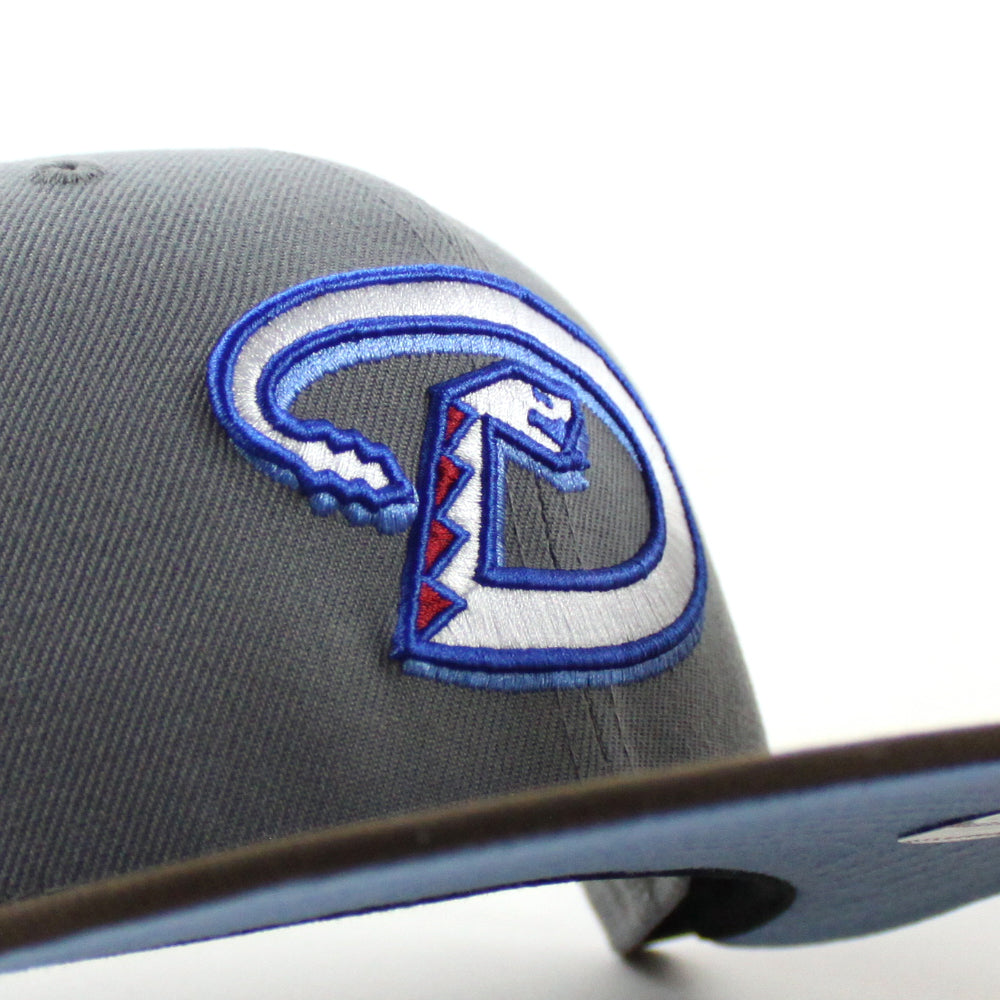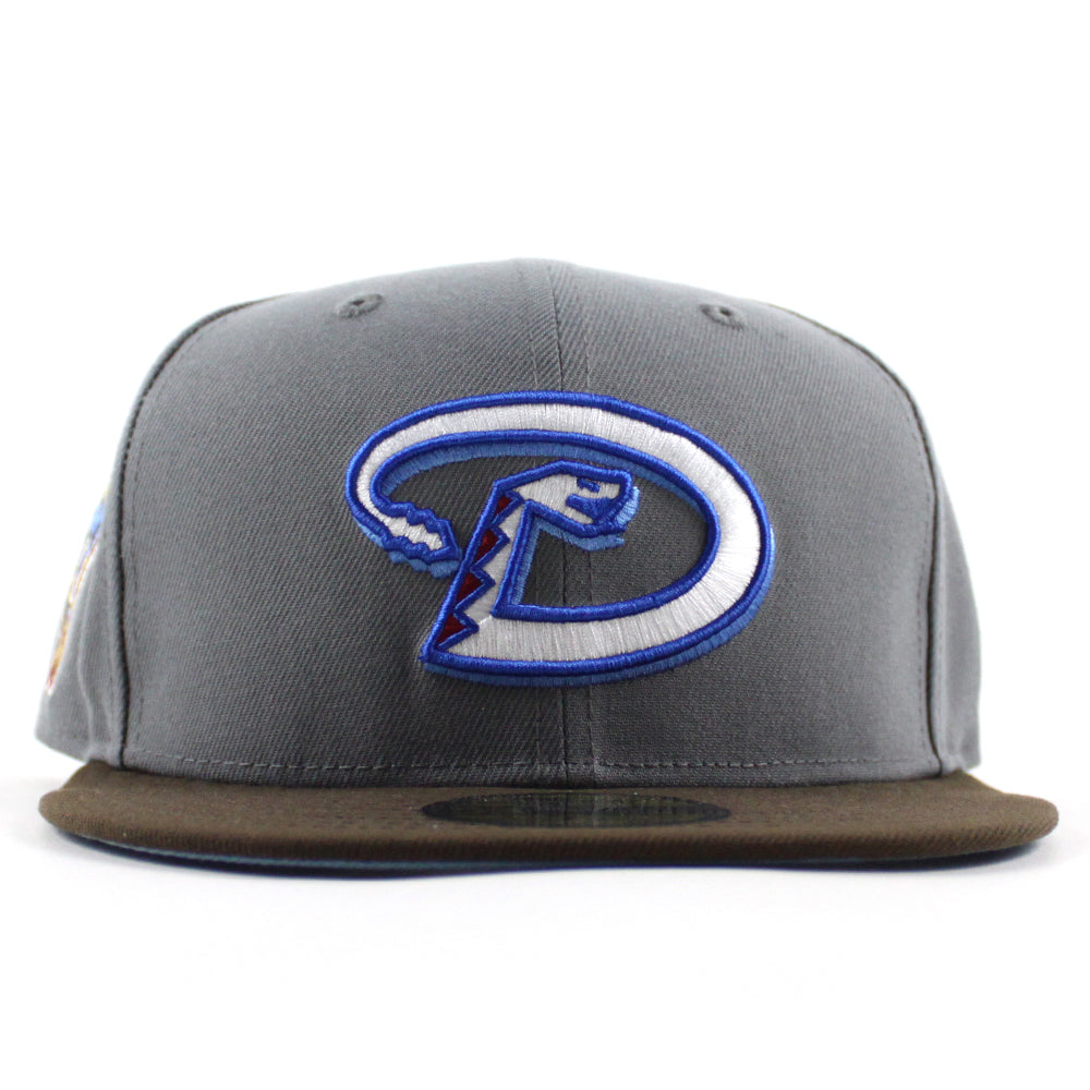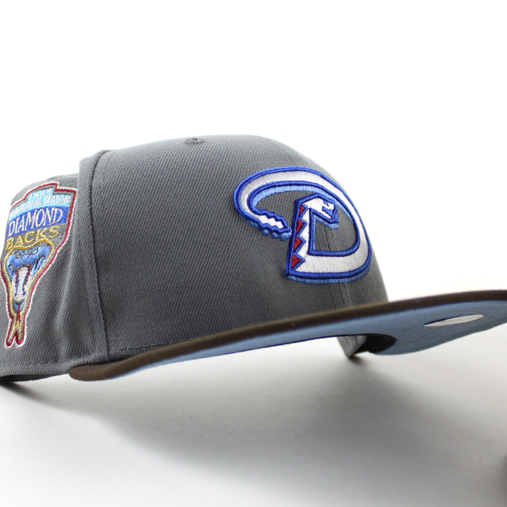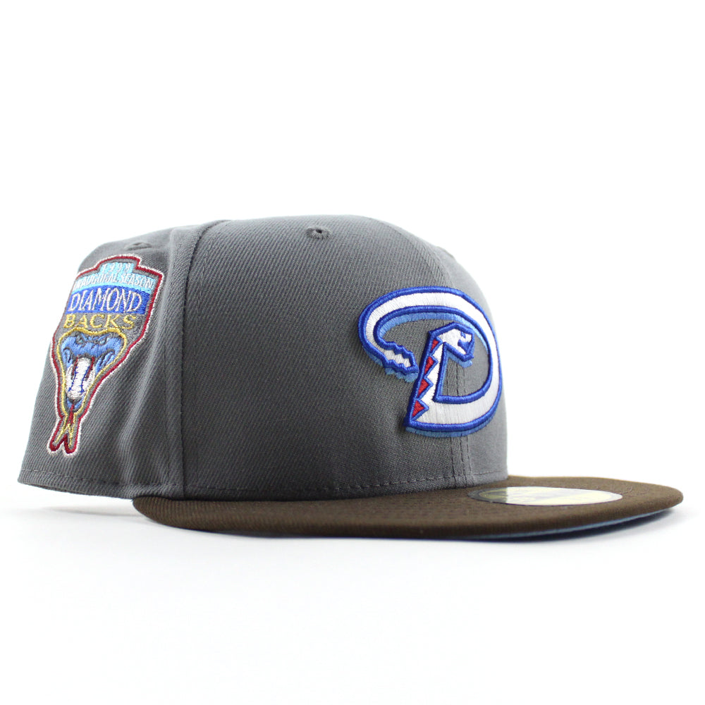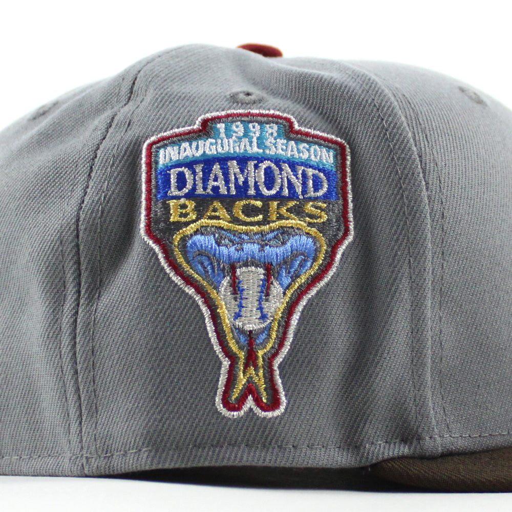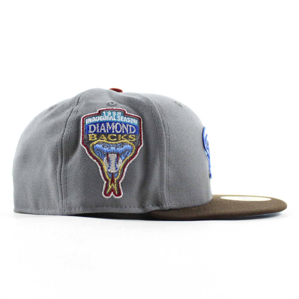 Arizona Diamondbacks 1998 Inaugural Season New Era 59Fifty Fitted Hat in Gray, Walnut Brown, Sky Blue Under Brim.