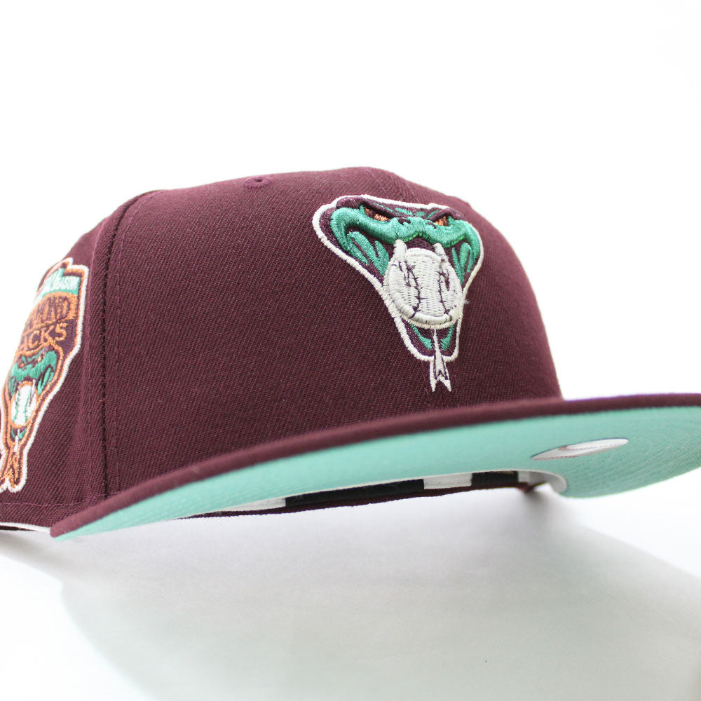 Arizona Diamondbacks 1998 INAUGURAL SEASON New Era 59Fifty Fitted Hat Maroon & Mint Under Brim.