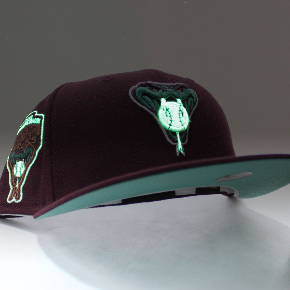 Arizona Diamondbacks 1998 INAUGURAL SEASON New Era 59Fifty Fitted Hat (Glow in the Dark Maroon Mint Under Brim)