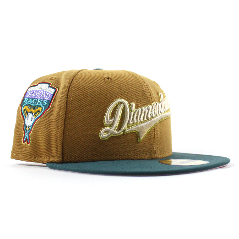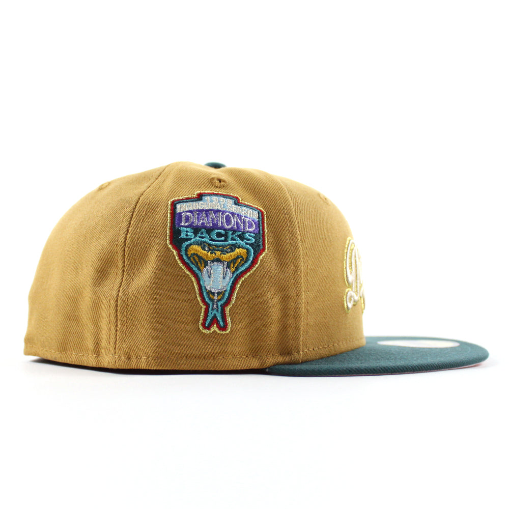 Arizona Diamondbacks 1998 Inaugural Season New Era 59Fifty Fitted Hat in Panama, Pine Green and Pink Under Brim.