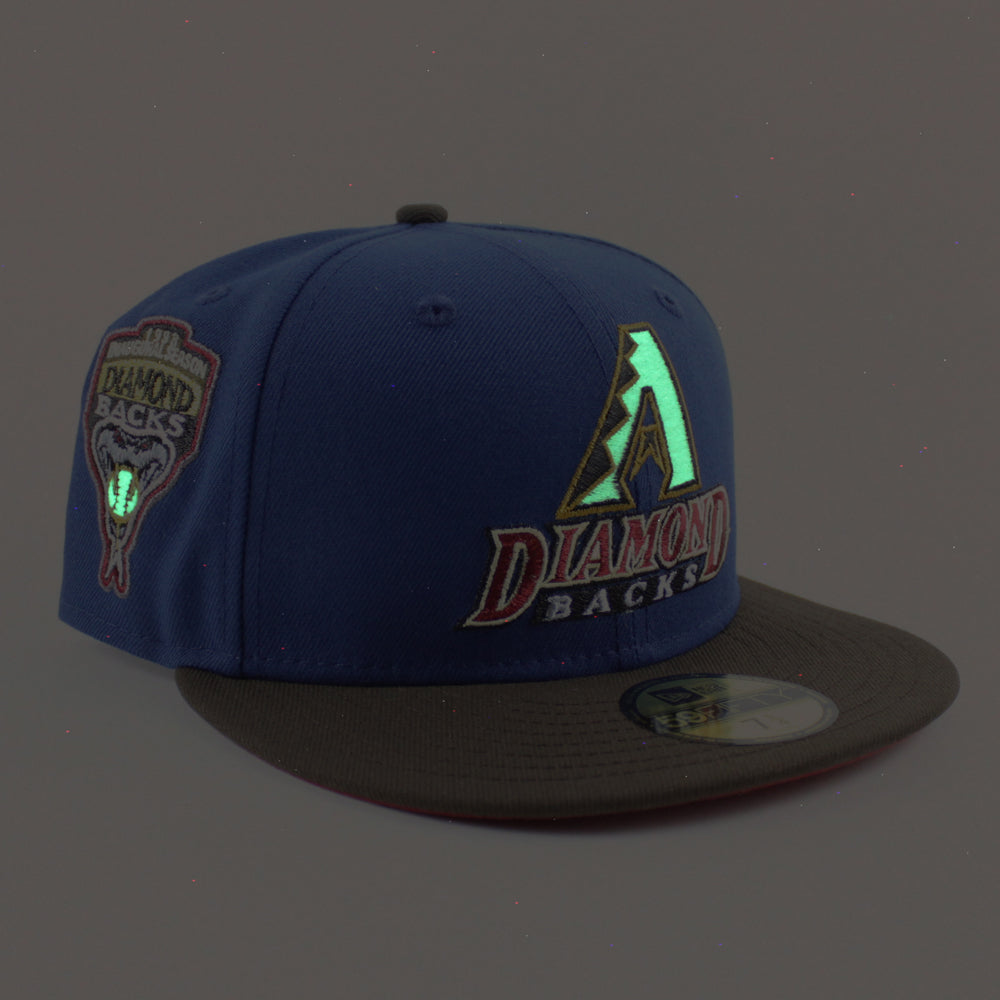 Arizona Diamondbacks 1998 Inaugural Season New Era 59Fifty Fitted Hat (Glow in the Dark SongBird Blue Walnut Pinot Red Under Brim)