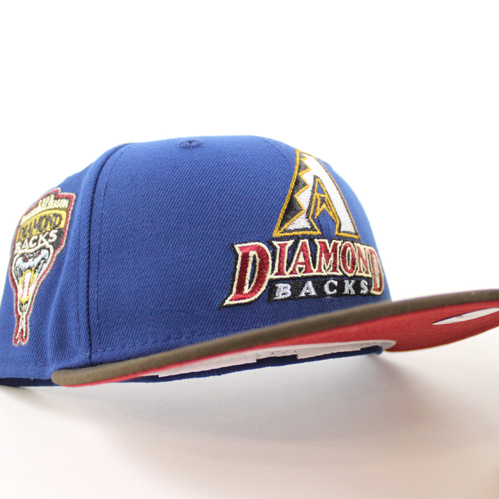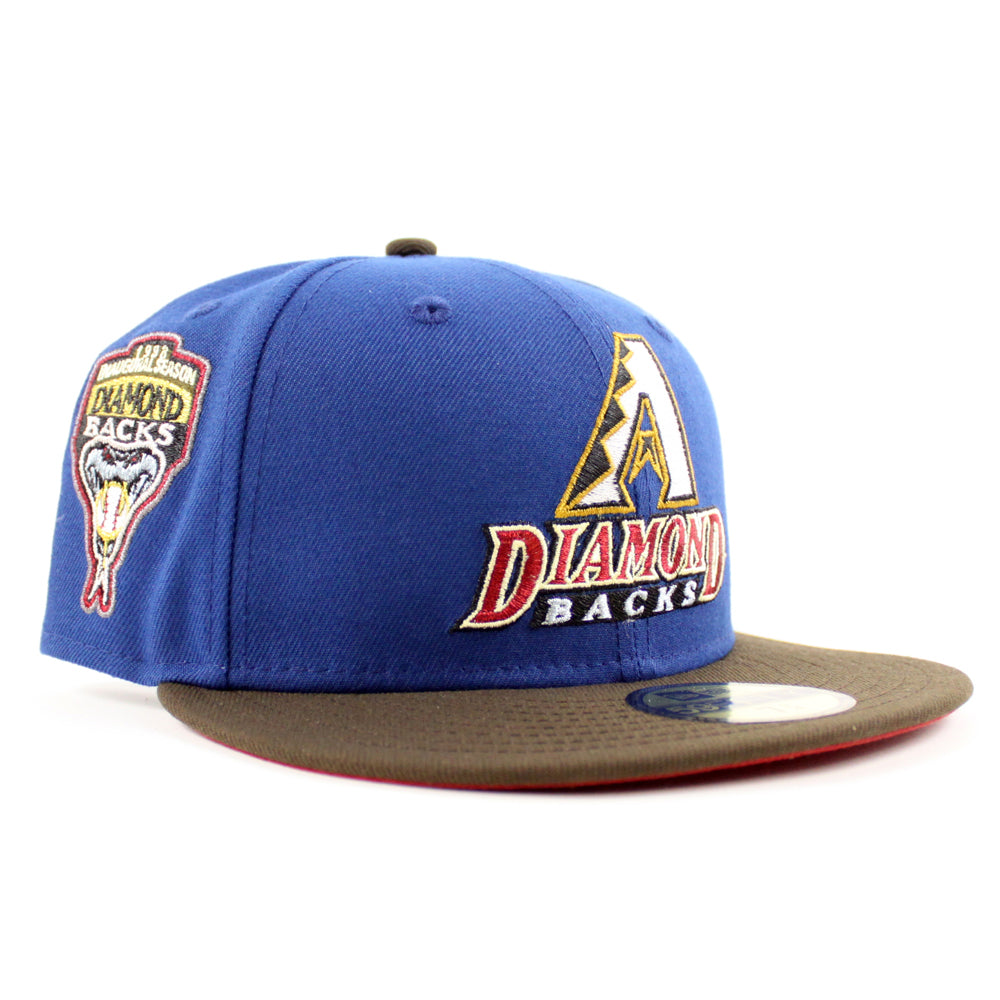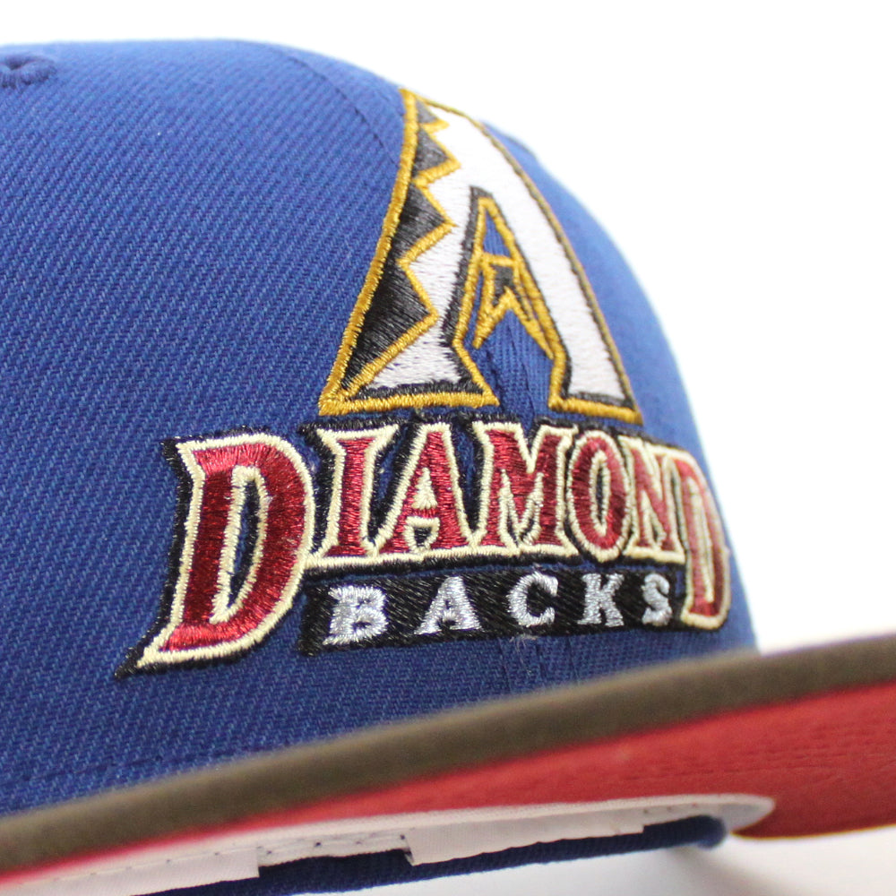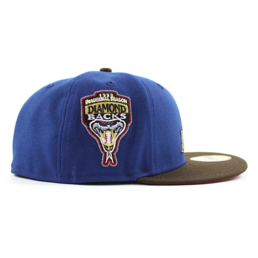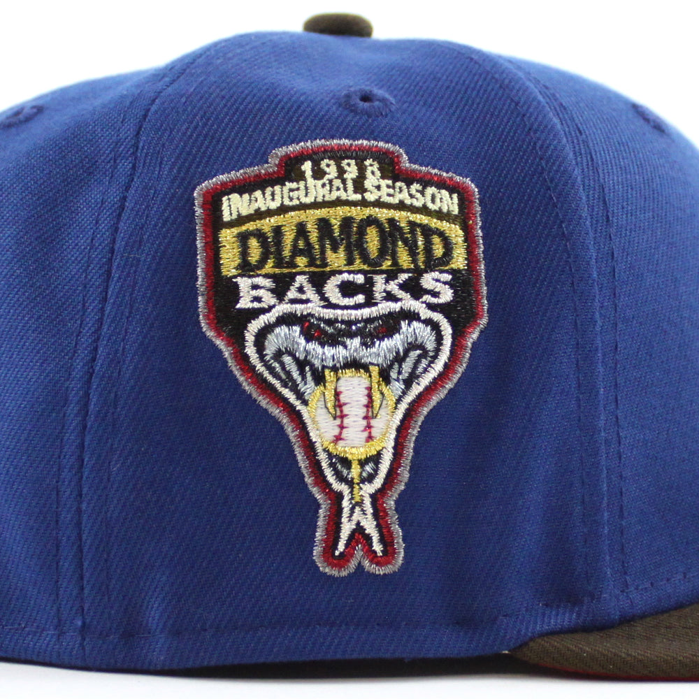 Arizona Diamondbacks 1998 Inaugural Season New Era 59Fifty Fitted Hat in SongBird Blue, Walnut and Pinot Red Under Brim.