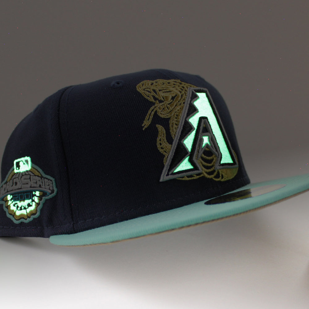 Arizona Diamondbacks 2001 World Series New Era 59Fifty Fitted Hat (GITD Navy Mint Khaki Under Brim)