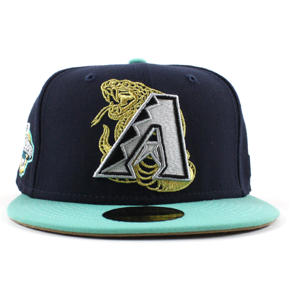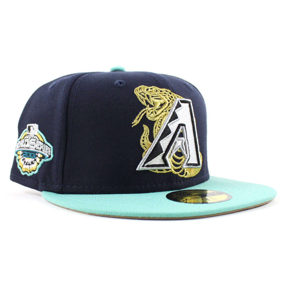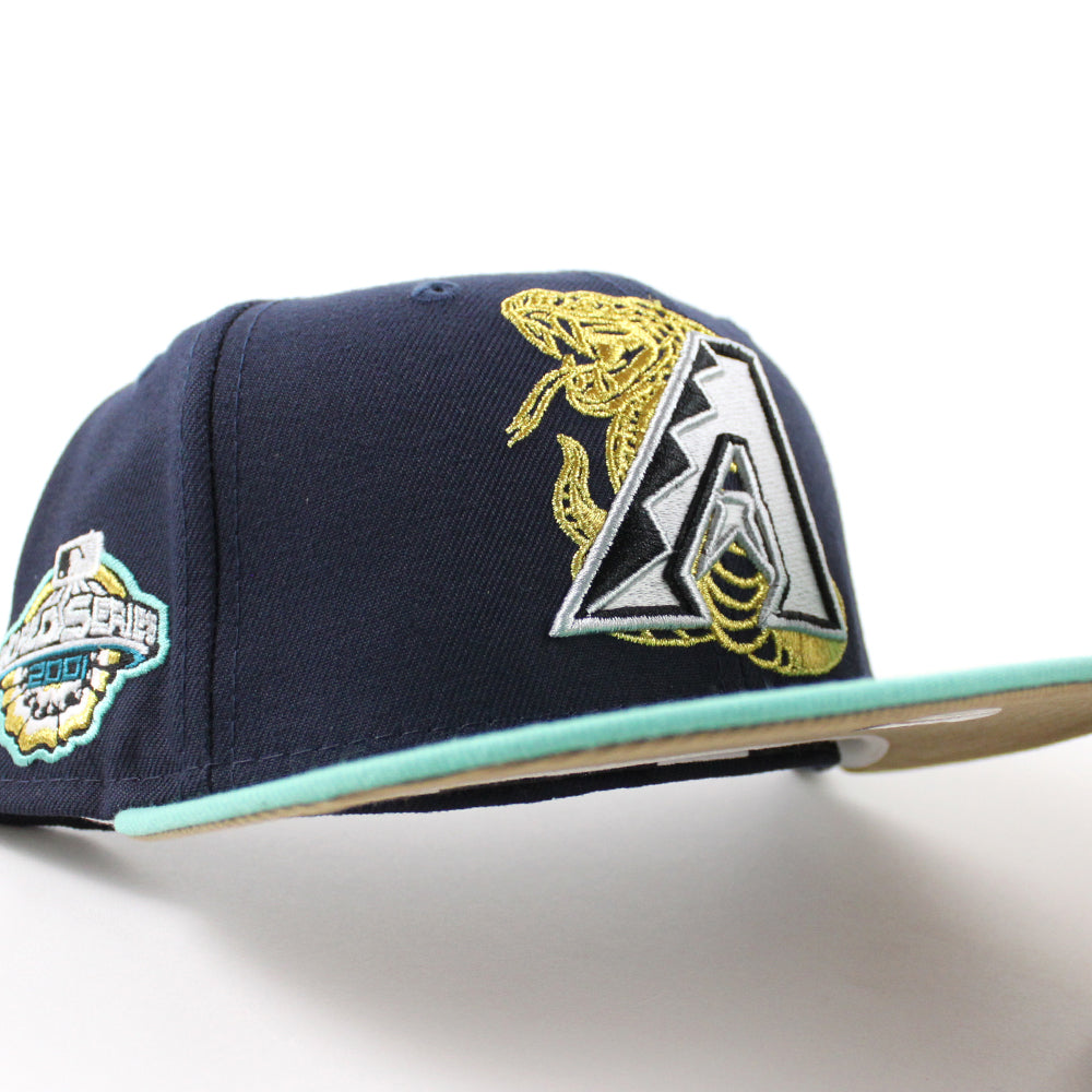 Arizona Diamondbacks 2001 World Series New Era 59Fifty Fitted Hat in Navy, Mint & Khaki Under Brim.