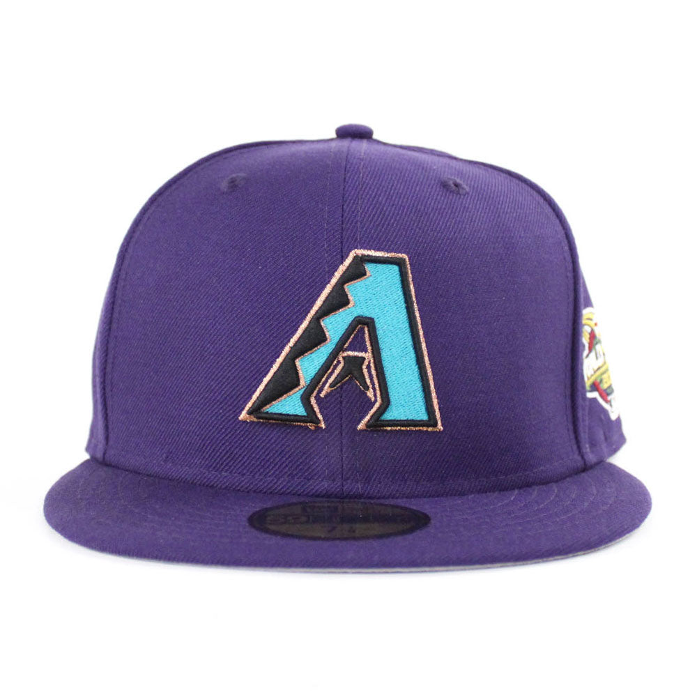 RETRO Arizona Diamondbacks 2001 WORLD SERIES New Era 59Fifty Fitted Hat in Purple and GRAY UNDER BRIM.