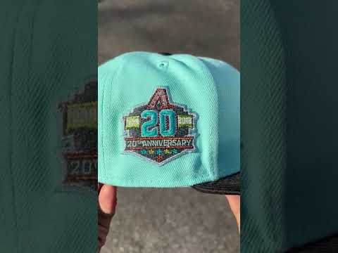 Arizona Diamondbacks 20th Anniversary New Era 59Fifty Fitted Hat in Blue Tint, Black and Gray Under Brim.