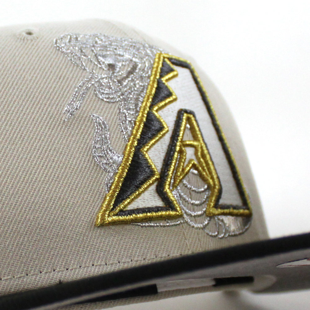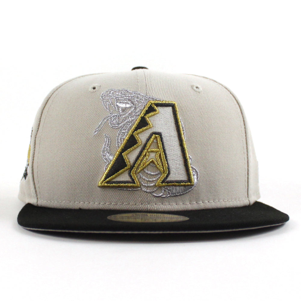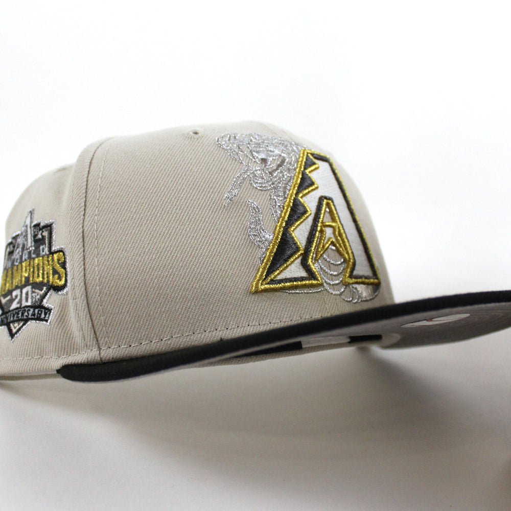 Arizona Diamondbacks World Champions 20th Anniversary New Era 59Fifty Fitted Hat in Stone, Black and Gray Under Brim.